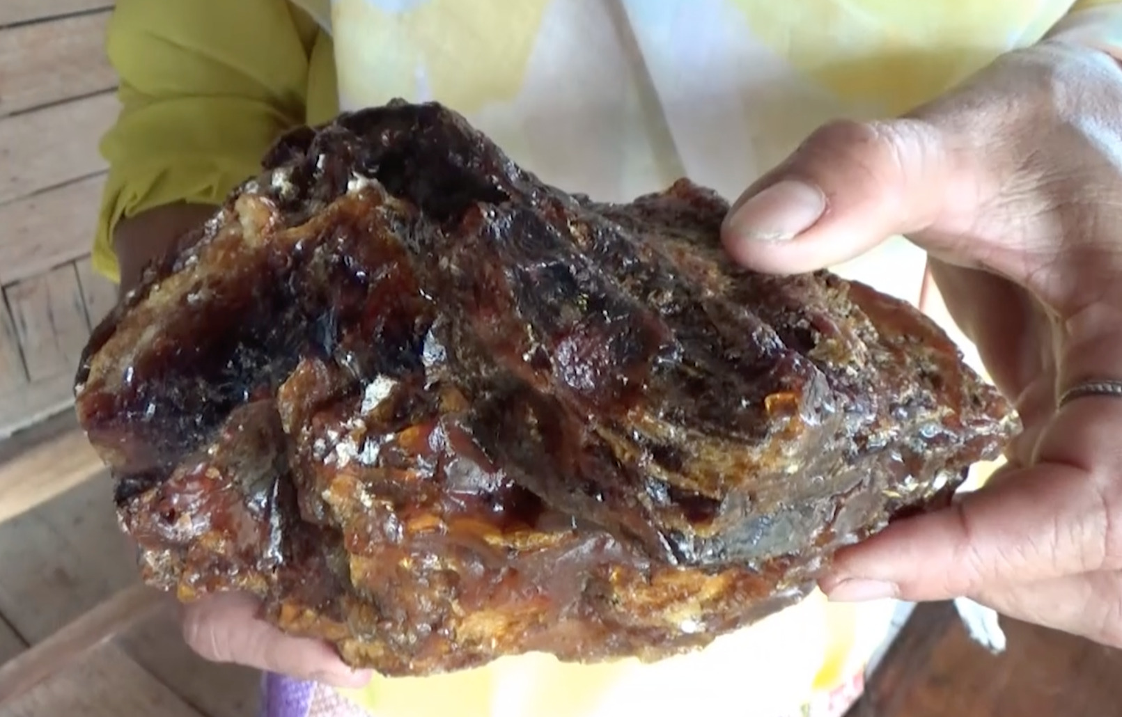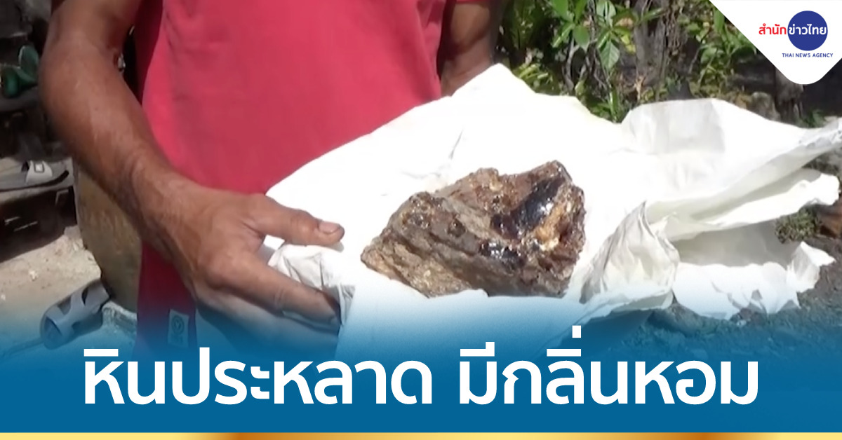 นายพิศาล ชาว ต.ควนโพธิ์ อ.ควนโพธิ์ จ.สตูล นำก้อนประหลาดที่คล้ายก้อนหินสีน้ำตาลแดงแกมเหลือง มีลักษณะแวววาวคล้ายอัญมณี แต่น้ำหนักเบา เมื่อนำมาชั่งได้ 1 กก.พอดี เมื่อกระทบกับแสงแดดจะส่องประกายแวววับเหมือนพลอย และมีกลิ่นหอม และเมื่อนำไปแช่น้ำก้อนดังกล่าวกลับลอยไม่จม และนำเศษเล็กๆ ของก้อนดังกล่าวมาเผาไฟ ก้อนที่แข็งเหมือนก้อนหิน เมื่อถูกไฟจะละลายกลายเป็นยาง และส่งกลิ่นหอมอบอวลไปทั่วบริเวณ กลิ่นคล้ายกับน้ำหอมบวกกลิ่นสมุนไพร