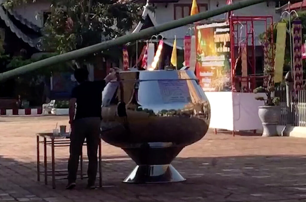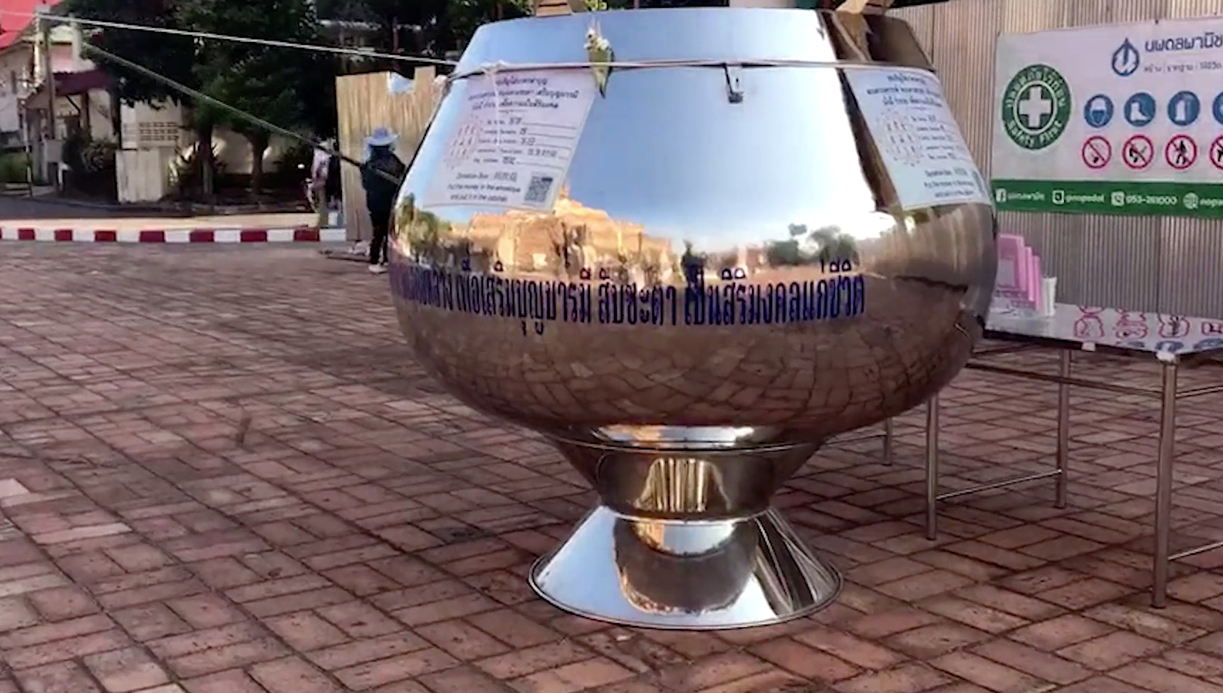 โดยจะมีซองสีชมพูไว้ให้เขียนชื่อที่อยู่และใส่ปัจจัยลงไป มีช่องหย่อนเงิน 4 ช่อง น้ำหนักบาตรประมาณ 100 กิโลกรัม ถ้าใช้ใส่ธนบัตรจนเต็มบาตร น่าจะเกิน 7 หลัก ส่วนใหญ่ประมาณ 1 เดือนจะเปิด ข้อดีหากคนร้ายคิดจะยกต้องใช้หลายคนซึ่งเป็นไปได้ยาก และไม่ต้องย้ายหรือยกเก็บในช่วงกลางคืน นอกจากนั้นประชาชนหรือนักบุญสามารถสแกนคิวอาร์โค้ดทำบุญทางออนไลน์ได้อีกด้วย.-สำนักข่าวไทย