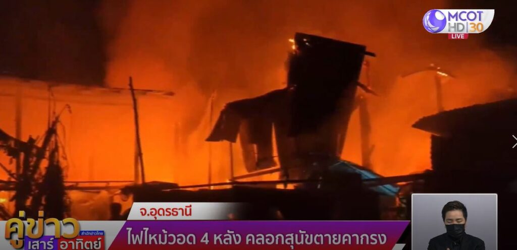 ส่วนที่ จ.อุดรธานี เกิดเหตุไฟไหม้บ้านวอด 4 หลัง แต่ที่น่าสลดใจคือ น้องหมาที่เลี้ยงไว้ถูกไฟคลอกตาย