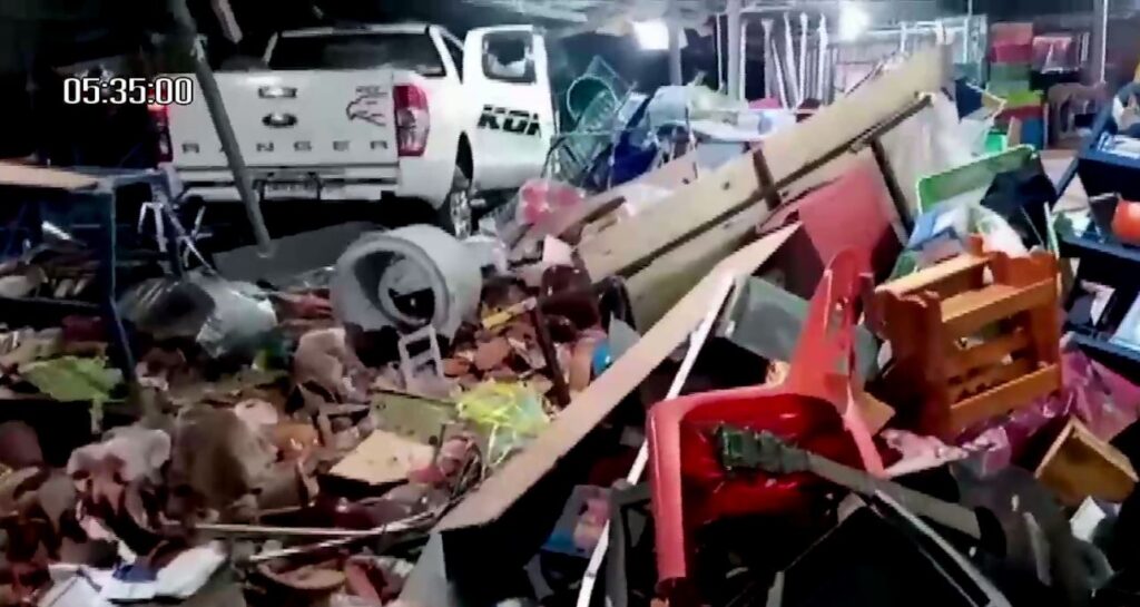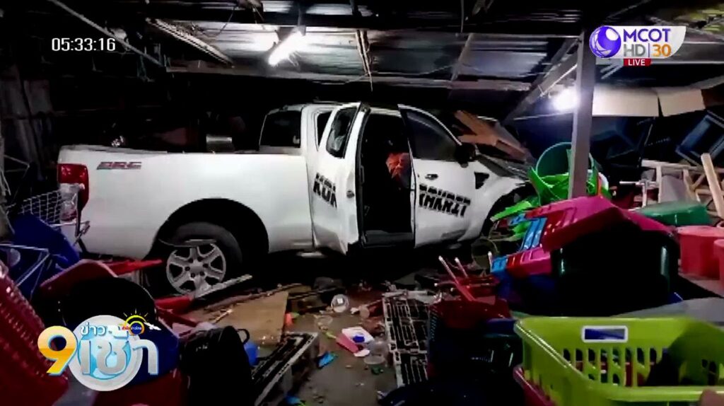เวลาประมาณ 23.00 น. วานนี้ (14 ก.พ.) ร้อยตำรวจเอกสมเดช เกตุวัตถา รองสารวัตรสอบสวน สถานีตำรวจภูธรบ่อทอง รับแจ้งจากหน่วยกู้ภัยสว่างเหตุทุ่งเหียง มีอุบัติเหตุรถกระบะพุ่งชนร้านขายของเบ็ดเตล็ด โดยมีภาพจากกล้องวงจรปิดภายในร้านสามารถจับภาพไว้ได้ ที่เกิดเหตุอยู่บริเวณสามแยกปากซอยโรงเรียนบ่อทองวงษ์จันทร์ ถนนสายหนองเสม็ดบ่อทอง ม.1 เขตเทศบาลบ่อทอง อำเภอบ่อทอง จังหวัดชลบุรี