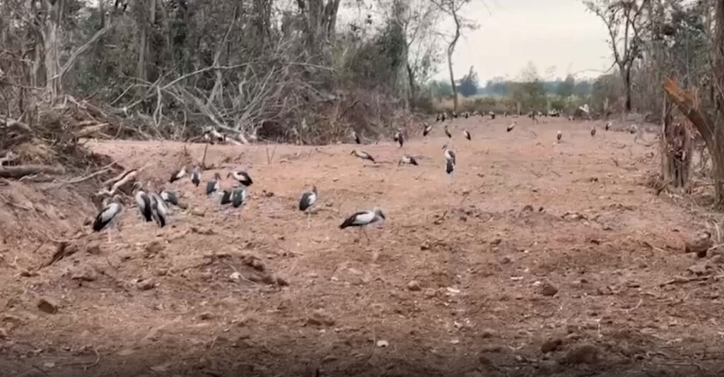 สภาพพื้นที่ป่าประมาณ 10 ไร่ ติดกับถนนสายอำเภอโกสุมพิสัย-อำเภอเชียงยืน บ้านขี ตำบลหนองซอน อำเภอเชียงยืน จังหวัดมหาสารคาม เต็มไปด้วยฝูงนกปากห่างจำนวนมาก ที่อพยพมาอาศัยเป็นระยะเวลากว่าครึ่งปี ล่าสุดกลายเป็นแหล่งเพาะพันธุ์จนเพิ่มปริมาณอย่างรวดเร็ว สร้างมลพิษทางเสียง กลิ่นจากมูลนกและซากนกตายนับพันตัว ชาวบ้านวอนหน่วยงานที่เกี่ยวข้องเข้าตรวจสอบและหาวิธีป้องกัน หวั่นโรคระบาดจากนกปากห่าง