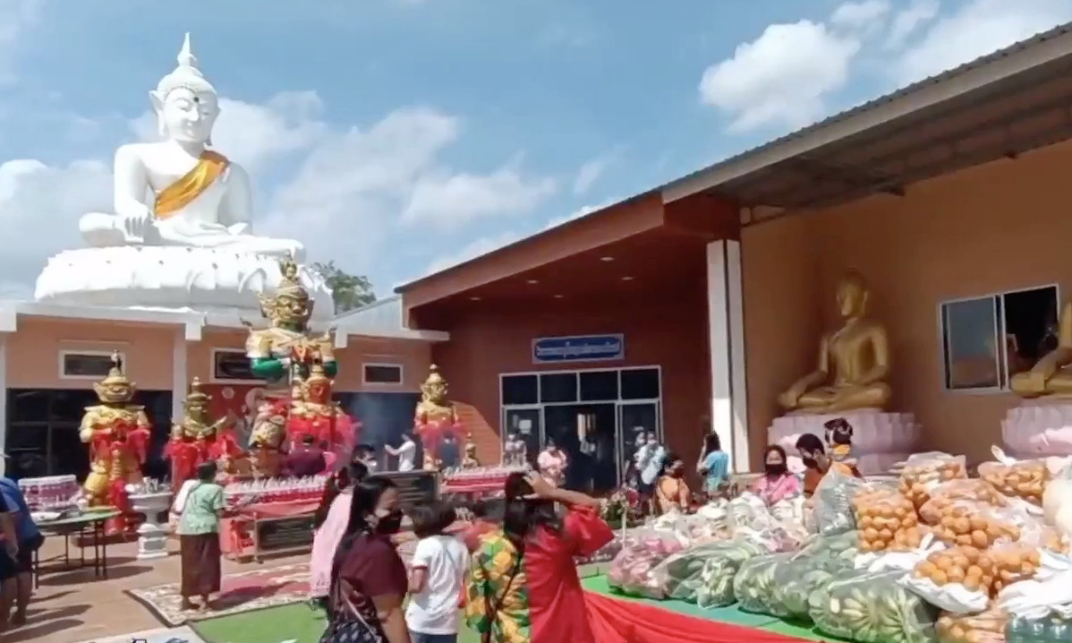 บรรยากาศที่วัดสมานมิตร ตำบลหนองงูเหลือม อำเภอเฉลิมพระเกียรติ จังหวัดนครราชสีมา มีพุทธศาสนิกชนจำนวนมากมากราบไหว้บูชารูปหล่อท้าวเวสสุวรรณองค์ใหญ่สูง 5 เมตร เพื่อขอพร ขอโชคลาภ เสริมสิริมงคลชีวิต พร้อมกันนี้มีผู้โชคดีถูกลอตเตอรี่รางวัลที่ 1 นำผลไม้หลายอย่าง 2 คันรถกระบะ พร้อมเครื่องดื่ม น้ำเปล่า น้ำแดง 100 ขวด มูลค่ากว่า 40,000 บาท แก้บนหลังได้รับโชคใหญ่ 12 ล้านบาท งวดวันที่ 17 กุมภาพันธ์ที่ผ่านมา เป็นหญิง อายุ 36 ปี ไม่ประสงค์จะออกนาม เป็นชาวบ้านบ้านหนองรี จังหวัดนครราชสีมา พาครอบครัวและญาติๆ มาแก้บน พร้อมโชว์รูปลอตเตอรี่ที่ถูกรางวัล และใบเสร็จการรับเงินจากธนาคารกรุงไทย 12 ล้านบาท