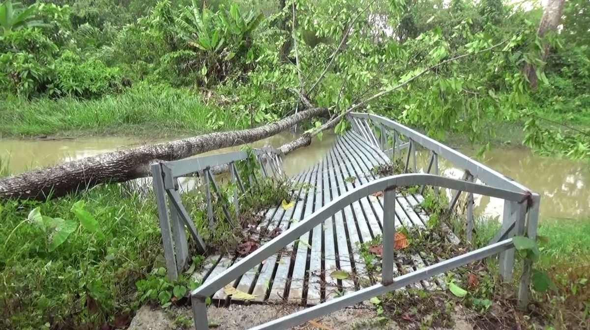 นายพิเชษฐ์ โสรัสสะ ผู้ใหญ่บ้าน หมู่ 3 ต.ควนกาหลง กล่าวว่า หลังรับแจ้งจากชาวบ้าน ได้เข้าตรวจสอบในพื้นที่ พบมีบ้านเรือนราษฎรได้รับความเสียหายหลังคาปลิว จำนวน 30 ครัวเรือน หนักสุดคือ บ้านนายหมาน เคเระมะ ต้นยางพาราเสียหาย 20 ไร่ จำนวน 1,400 ต้น ล้มขวางถนนในหมู่บ้าน 3 สาย และเคลียร์ได้เพียง 1 สาย ส่วนอีก 2 สาย ยังใช้การไม่ได้ ต้องเลี่ยงไปใช้เส้นทางอื่น