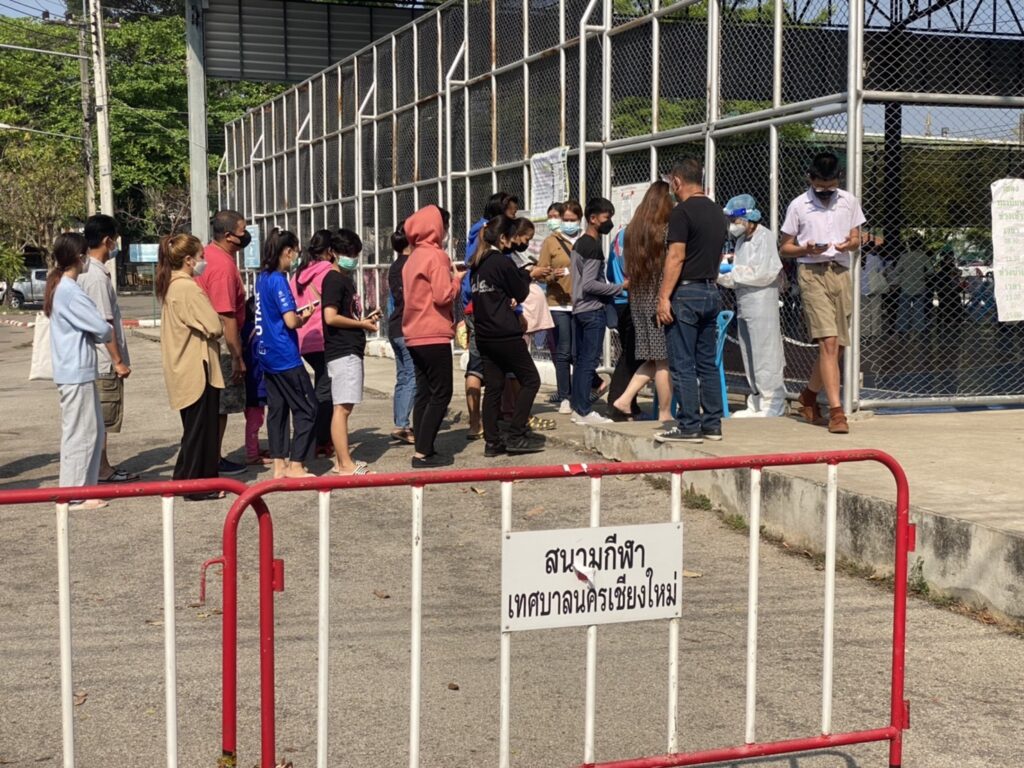 สถานการณ์การแพร่ระบาดโควิด-19 ของจังหวัดเชียงใหม่ยังมีแนวโน้มสูงขึ้น วันนี้พบผู้ติดเชื้อรายใหม่เพิ่ม 315 ราย ส่วนผลตรวจเอทีเคเป็นบวก 1,918 ราย สำหรับบรรยากาศจุดตรวจเอทีเคของสาธารณสุขจังหวัด โดยเทศบาลนครเชียงใหม่ที่ตั้งอยู่บริเวณสนามกีฬาเทศบาลนครเชียงใหม่ เช้านี้ผู้ที่มีความเสี่ยงสูงตรวจหาเชื้อโควิด-19 เดินทางมาเป็นจำนวนมาก ทำให้เจ้าหน้าที่ต้องจัดคิวให้มารับการตรวจอีกครั้งในช่วงบ่าย เนื่องจากรอบเช้าเต็มตั้งแต่เวลา 10.00 น.แล้ว ทั้งนี้ เจ้าหน้าที่แจ้งว่าเพื่อไม่ให้สถานที่ของจุดตรวจเอทีเค แออัดและกลายเป็นที่แพร่เชื้อ จึงต้องจำกัดคนที่เข้าตรวจช่วงเช้า 200 คน ช่วงบ่ายอีก 200 คน เป็น 400 คน หากใครที่มาหลังจากนี้ให้รับคิวเป็นเข้ารับการตรวจหาเชื้อในวันถัดไปแทน