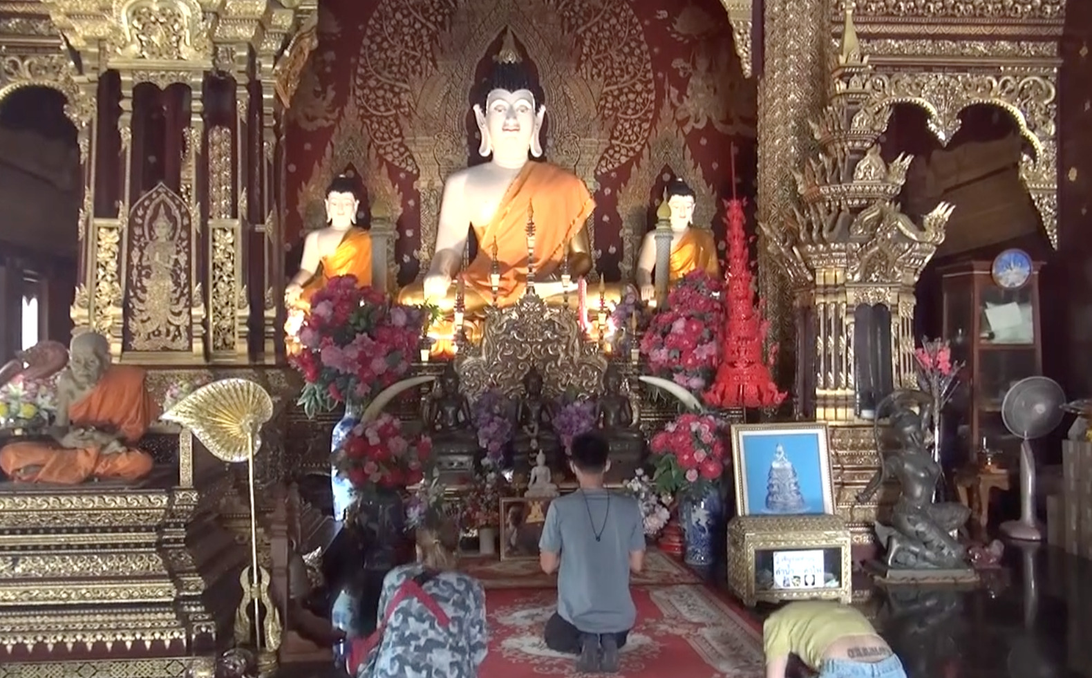 ที่วัดป่าแดด อำเภอเมือง จังหวัดเชียงใหม่ มีประชาชน นักท่องเที่ยว กลุ่มวัยรุ่น วัยทำงาน บุคคลมีชื่อเสียงพากันไปขอพร โดยนำเครื่องพลีกรรม เป็นดอกไม้สีเหลือง ถั่ว งาไปถวายองค์มหาเทพพระพิฆเนศบนศาล สั่นกระดิ่งให้ดัง 9 ครั้ง พร้อมทั้งกระซิบขอพรข้างหู หนูมุสิกะ พาหนะองค์พระพิฆเนศ เทน้ำมนต์ศักดิ์สิทธิ์ลงบนศิวลึงค์และบ่อน้ำศักดิ์สิทธิ์ นำน้ำมาลูบหัวเพื่อความเป็นสิริมงคล และที่อีกจุดที่สำคัญเป็นการโอบกอดเสาไม้สักทอง บริเวณหอพระเพชรกรรมฐาน เป็นอาคารไม้สักขนาดใหญ่ทั้งหลัง มูลค่านับ 100 ล้านบาท ซึ่งมีเสาไม้สักขนาดใหญ่กว่าคนโอบมากกว่า 50 ต้น แต่ให้โอบกอดเฉพาะเสาเอก เสาโทข้างพระประธาน และให้สั่นระฆังให้ดังที่สุด 3 ครั้ง เพื่อจะได้บุญหนักสักใหญ่