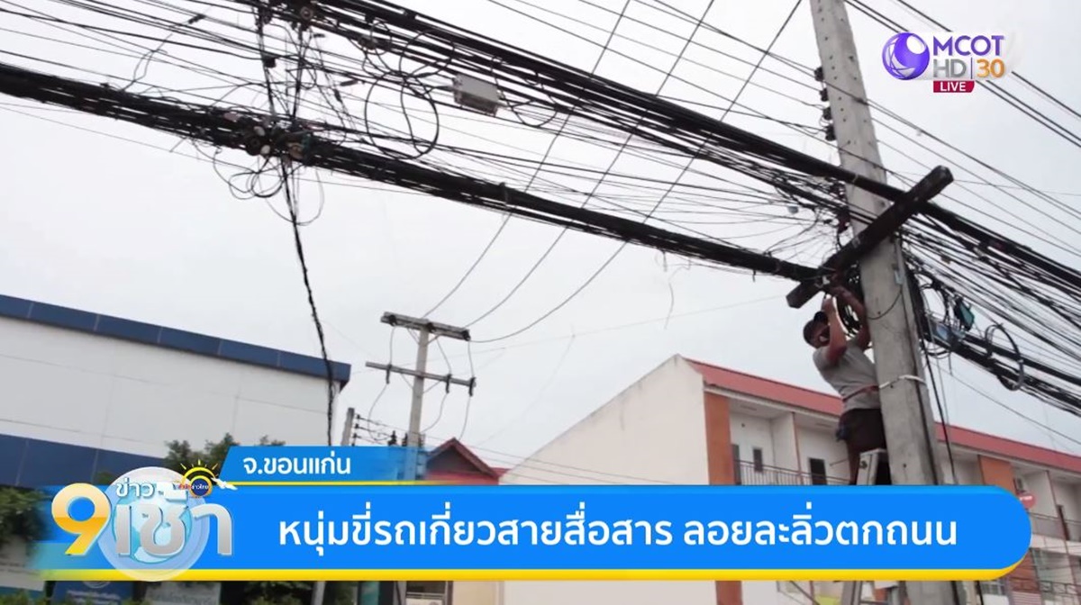 ภาพจากกล้องวงจรปิดของอู่ซ่อมรถยนต์แห่งหนึ่ง ในพื้นที่บ้านกอก ต.บ้านเป็ด อ.เมือง จ.ขอนแก่น เผยให้เห็นนาทีชีวิตของชายคนหนึ่งที่กำลังขี่รถจักรยานยนต์มาตามถนนบ้านกอก เมื่อมาถึงทางเข้าปั๊มน้ำมัน ตรงข้ามอู่ซ่อมรถยนต์ ชายที่ขี่รถจักรยานยนต์ถูกสายเคเบิลที่หย่อนลงมาเกี่ยวเข้าที่บริเวณลำคอ ทำให้ร่างลอยออกจากตัวรถ ก่อนจะตกลงบนพื้นถนน ส่วนรถจักรยานยนต์ล้มลงห่างจากจุดเกิดเหตุประมาณ 10 เมตร เคราะห์ดีขณะเกิดเหตุไม่มีรถขับตามหลังมา ไม่เช่นนั้นชายหนุ่มคนดังกล่าวอาจถูกรถชนซ้ำได้