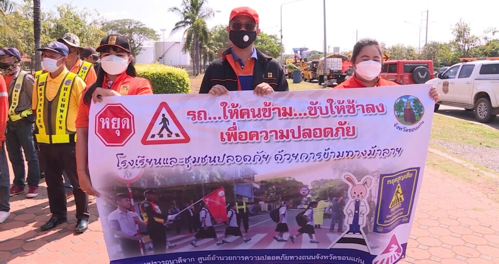 ขอนแก่น 22 ก.พ. – ผู้ว่าฯ ขอนแก่น เปิดโครงการรณรงค์ลดอุบัติเหตุบริเวณทางข้าม ด้วยกิจกรรมทำความสะอาดผิวถนน ตีเส้นจราจร และรณรงค์ป้องกันอุบัติเหตุทางข้าม บริเวณทางเข้าประตูเมืองจังหวัดขอนแก่น