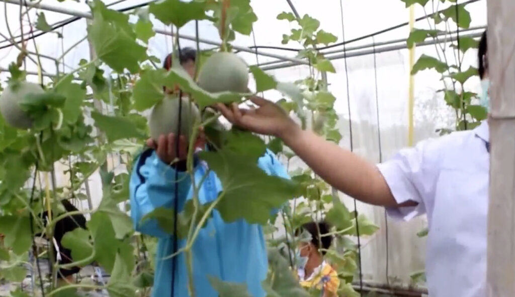 บริเวณโรงเรียนโสตศึกษาจังหวัดสุรินทร์ นำโครงการเกษตรตามรอยพ่อมาส่งเสริมการฝึกอาชีพให้เด็กนักเรียนที่มีความบกพร่องทางการได้ยิน (หูหนวก) และด้านสติปัญญา (เรียนรู้ช้า) ทำสวนผักเกษตรอินทรีย์, เลี้ยงโค, ปลูกเมล่อน
