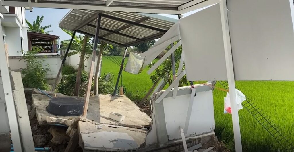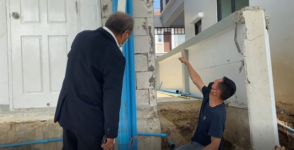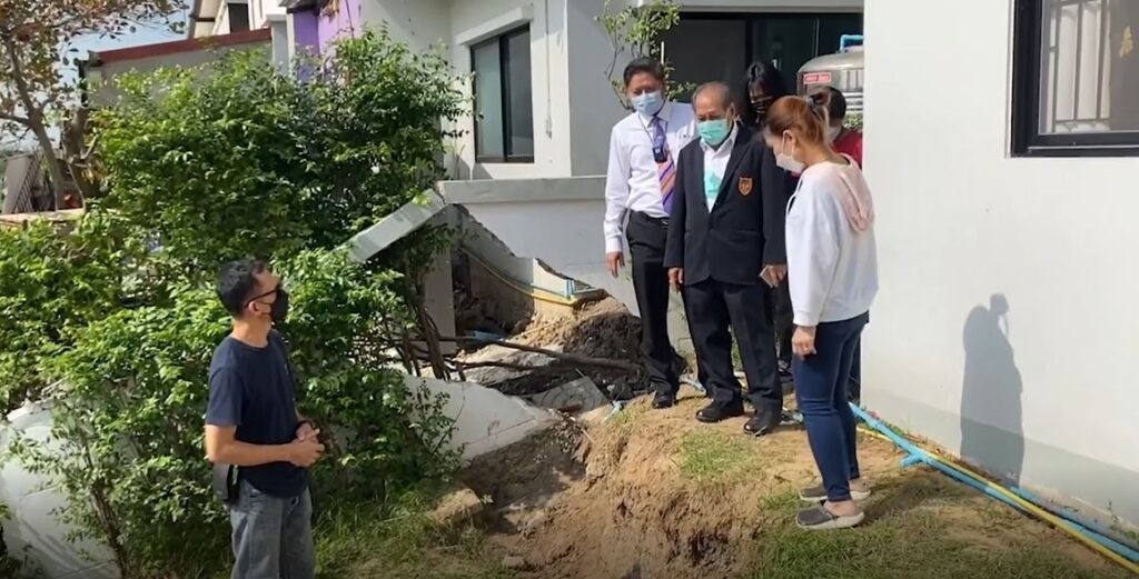วันนี้ (22 ก.พ.) เจ้าหน้าที่วิศวกรรมสถานแห่งประเทศไทย ในพระบรมราชูปถัมภ์ (วสท.) พร้อมด้วยสำนักงานคณะกรรมการคุ้มครองผู้บริโภค (สคบ.) ลงพื้นที่ตรวจสอบหาสาเหตุการถล่มของกำแพงบ้าน 6 หลัง ในหมู่บ้านแห่งหนึ่ง อ.ไทรน้อย จ.นนทบุรี