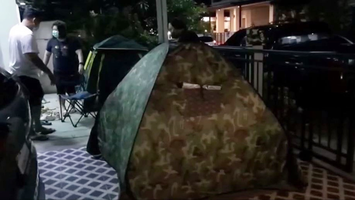 นนทบุรี 23 ก.พ. – เจ้าของบ้าน 6 หลัง จากเหตุกำแพงหมู่บ้านพังถล่ม ผวาบ้านทรุดตัวลงมาทับ ต้องนำเต็นท์มากางนอนหน้าบ้าน ตามคำแนะนำของวิศวกรรมสถานฯ