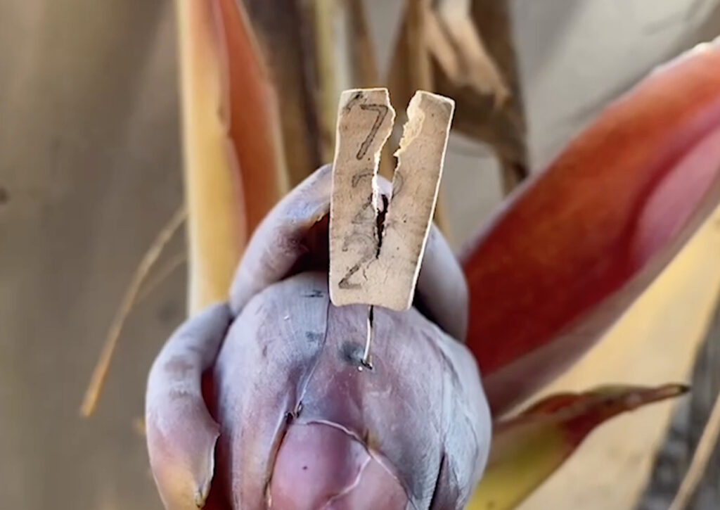 ปลีกล้วยประหลาดนี้ถูกพบที่สวนของนายชะอ่อน อายุ 40ปี อยู่หมู่บ้านโคกลำดวน คุ้มหนองเกาะ หมู่ที่ 13 ต.หนองเหล็ก อ.ศีขรภูมิ จ.สุรินทร์ เจ้าของสวนบอกว่า ช่วงเช้ามืด ออกไปที่สวนไปดูต้นไม้และพืชผักที่ปลูกจนกระทั่งเหลือบไปเห็นปลีกล้วยงออกอกมากลางลำต้น ตอนแรกที่เจอลักษณะคล้ายหัวพญานาค หลังจากนั้นก็มีชาวบ้านมาส่องและนำธูปเสี่ยงตัวเลขมาจุดเพื่อเสี่ยงโชค และเลขออกมาคือ 722 จึงเชื่อว่าเลข 2 ต้องมาอย่างแน่นอน.-สำนักข่าวไทย