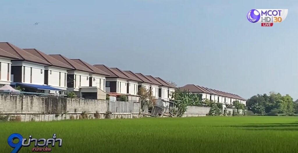 ส่วนเช้านี้ผู้สื่อข่าวลงพื้นที่ติดตามความคืบหน้าอีกรอบ พบว่าบ้านที่ทรุดบางหลังติดประกาศขายแล้ว เจ้าของบ้านกล่าวว่าอยากให้หน่วยงานราชการลงมาช่วย หากยังไม่มีการแก้ไข ลูกบ้านอาจจะไม่อยู่อาศัยอีกแล้ว เสียทั้งเงิน เสียทั้งเวลา คงต้องขายบ้านทิ้ง เพราะมีแต่อันตราย ยิ่งหากมีฝนตกลงมาอีกอาจจะทำให้ดินสไลด์มากกว่าเดิม และบ้านอาจจะทรุดทั้งหลัง ทำให้ครอบครัวตนอยู่ในความเสี่ยงอันตราย จึงติดประกาศขายบ้าน ขอวอนหน่อยงานที่เกี่ยวข้องลงมาช่วยแก้ไขเร็วๆ ด้วย พร้อมกับพาผู้สื่อข่าวเดินดูบริเวณพื้นด้านหน้าทุกหลัง มีการระเบิดหมดทุกหลัง หรืออาการน้อยที่สุดเลยคือพื้นลานจอดรถจะเตี้ยลง บางหลังมีการรีโนเวทใหม่บ้าง แต่ตอนที่ตนจะมาซื้อบ้านหลังนีได้มีการสอบถามจากคนเพื่อนบ้านที่อาศัยอยู่ก่อน หลายๆ คนเขาบอกว่ามันทรุดตั้งแต่ปีแรกๆ แล้ว 4-5 ปี ก็ทรุดแล้ว ส่วนตนเองนั้นเพิ่งมาซื้อบ้านหลังนี้ได้เพียงปีเดียวเท่านั้น ตอนแรกที่มาซื้อสภาพไม่ได้เป็นเหมือนตอนนี้ แต่มีทรุดอยู่บ้างตนได้ซื้อหินเอามาเก็บไว้ข้างๆ บ้าน เพื่อเอาไว้เติมเวลาบ้านมันทรุด ตอนนี้ยังไม่มีหน่วยงานไหนเข้ามาดูที่บ้านของตนเลย.-สำนักข่าวไทย