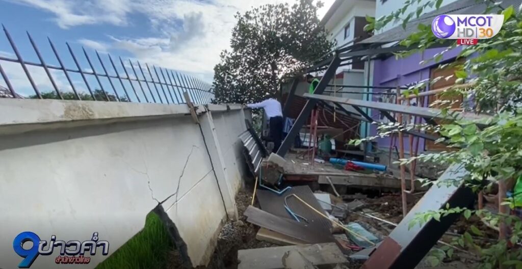 จากกรณีหมู่บ้านแห่งหนึ่งใน อ.ไทรน้อย จ.นนทบุรี กำแพงบ้านถล่มเสียหาย 6 หลัง ทางวิศวกรรมสถานแห่งประเทศไทยได้ลงพื้นที่ตรวจสอบและคาดว่าจะมีการถล่มเพิ่มเติมอย่างแน่นอน พร้อมแนะนำให้ชาวบ้านตัดตัวเชื่อมจากทางหลังบ้านออก ถ้าเกิดมีการถล่มจะได้ไม่เป็นการไปดึงตัวบ้านให้มีรอยร้าว และแนะนำให้ลูกบ้านทุกคนอย่านอนบริเวณชั้น 2 ที่ติดกับตัวกำแพง ให้ลงมานอนชั้นล่าง บริเวณเกือบถึงหน้าบ้าน เพื่อความปลอดภัย