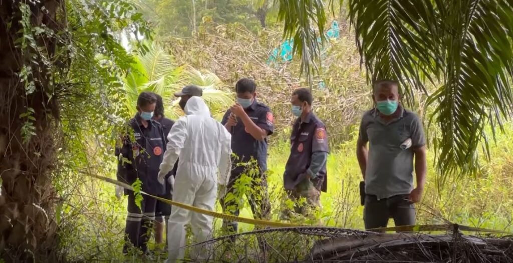 ตำรวจ สภ.เขาพังไกร เข้าตรวจสอบที่เกิดเหตุในสวนปาล์มน้ำมัน ม.7 ต.แหลม อ.หัวไทร จ.นครศรีธรรมราช หลังรับแจ้งเกิดเหตุฆ่ากันตายกลางสวนปาล์ม พบศพ นายตรัยภพ อายุ 75 ปี เจ้าของลานเทปาล์มและสวนปาล์มรายใหญ่ใน อ.หัวไทร และเป็นผู้กว้างขวางคนหนึ่งของ จ.นครศรีธรรมราช ถูกยิงด้วยปืน .38 เข้าบริเวณศีรษะและลำตัวหลายนัด