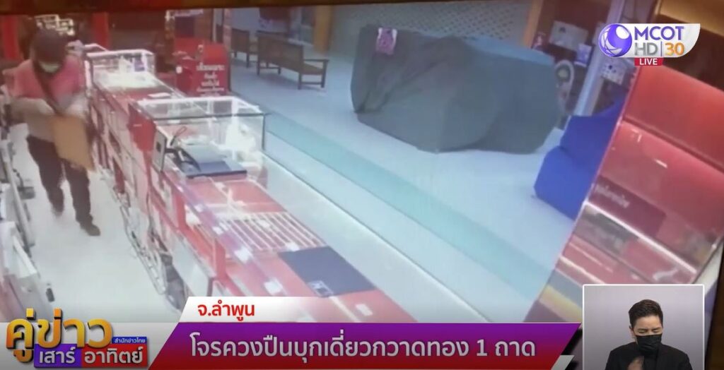 ลำพูน 26 ก.พ. – คนร้ายบุกเดี่ยวจี้ชิงทอง ร้านทองเยาวราชกรุงเทพ ภายในกลางห้างดัง จ.ลำพูน กวาดทอง 1 ถาด ขี่จักรยานยนต์หลบหนีลอยนวล