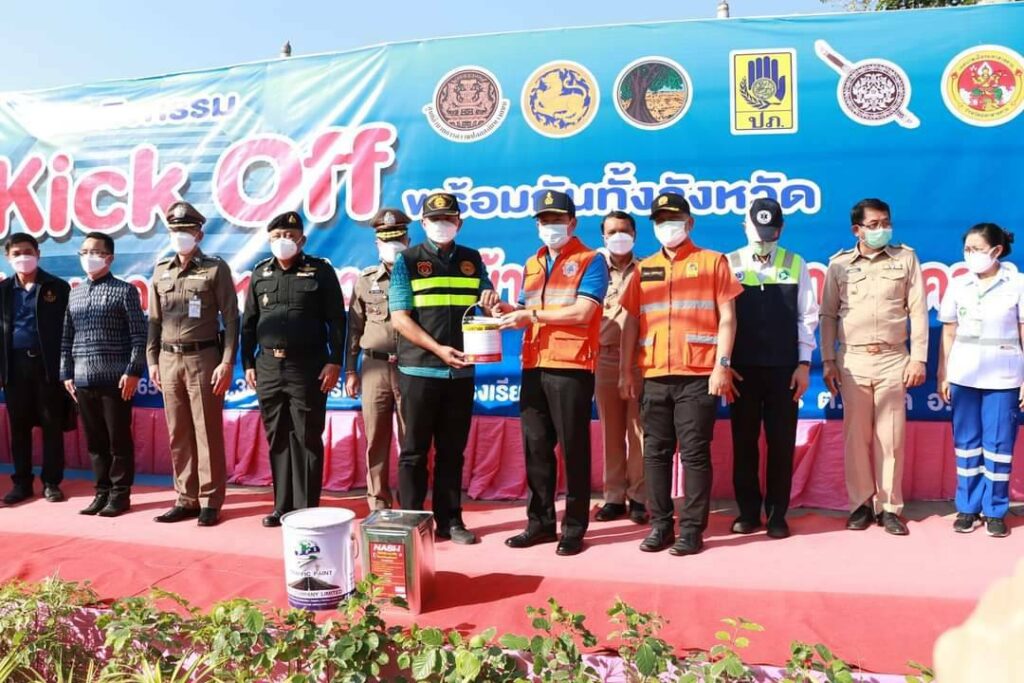 มหาสารคาม 26 ก.พ.- ศูนย์อำนวยการความปลอดภัยทางถนนจังหวัดมหาสารคาม จัดกิจกรรม “การรณรงค์ความปลอดภัยทางถนน” (Kick off) ปี 2565