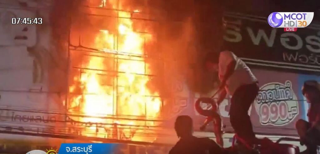 สระบุรี 28 ก.พ. – ไฟไหม้ร้านเฟอร์นิเจอร์ใน จ.สระบุรี กลางดึก คนนอนเฝ้าร้านพังหลังคาหนีออกมาได้หวุดหวิด ส่วนสาเหตุอยู่ระหว่างการตรวจสอบ