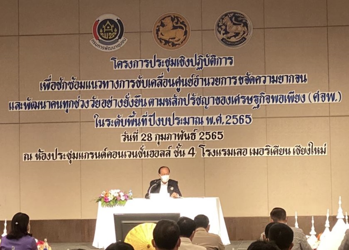 พล.อ.อนุพงษ์ เผ่าจินดา รัฐมนตรีว่าการกระทรวงมหาดไทย เป็นประธานในพิธีเปิดและมอบนโยบาย ในการประชุมเชิงปฏิบัติการ เพื่อซักซ้อมแนวทางการขับเคลื่อนศูนย์อำนวยการขจัดความยากจนและพัฒนาคนทุกช่วงวัยอย่างยั่งยืนตามหลักปรัชญาของเศรษฐกิจพอเพียง หรือ ศจพ. ในระดับพื้นที่ ปีงบประมาณ พ.ศ.2565 ที่โรงแรมเลอ เมอริเดียน เชียงใหม่