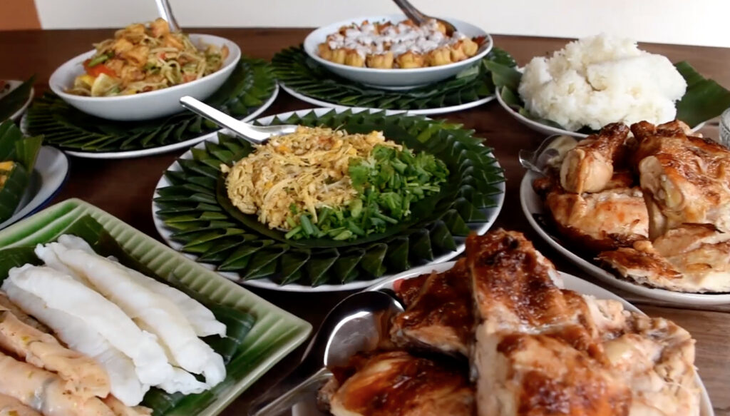 ช่วงรอห่อหมกสุก ก็จะเริ่มตั้งกระทะให้ร้อน เทน้ำมันพืช ผัดไข่ไก่ 1 ฟองตามด้วยเกสรดอกทุเรียน และขนมเส้น (ขนมจีนตากแห้ง) ปรุงรสตามใจชอบ รสชาติจะคล้ายผัดหน่อไม้ใส่ไข่ใส่วุ้นเส้น แต่เกสรดอกทุเรียนจะเหนียมนุ่ม ละมุนลิ้น