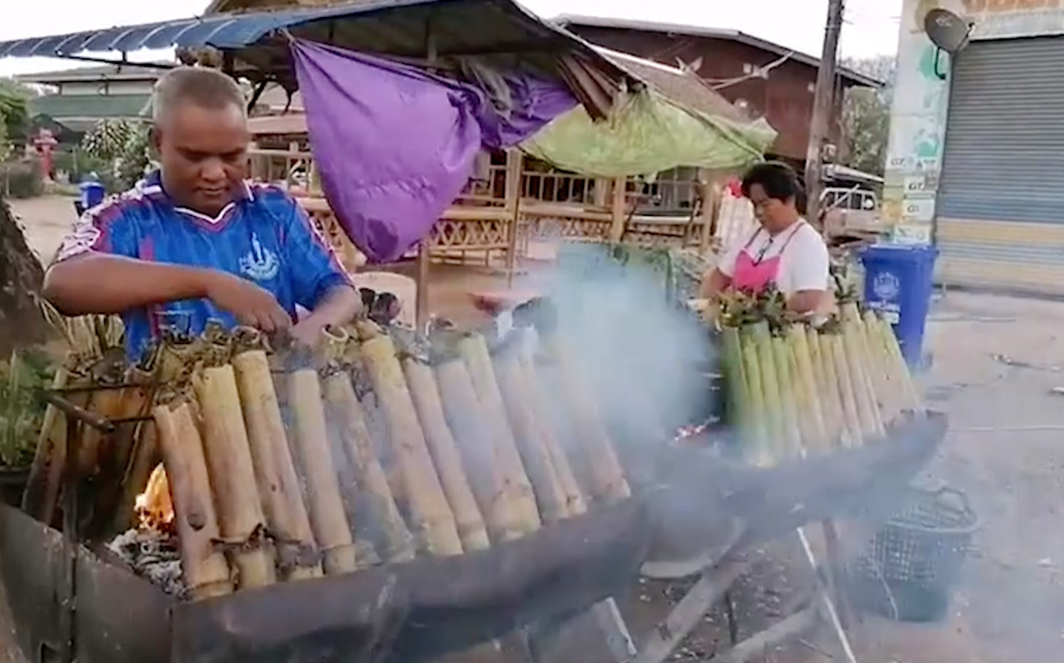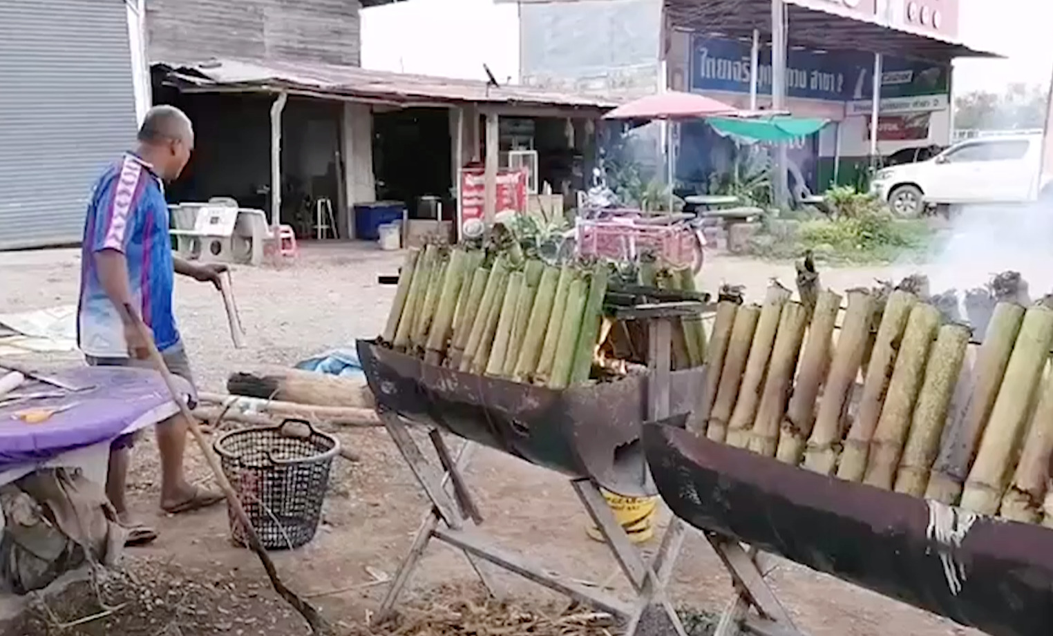 บริเวณริมถนนสายชัยภูมิ – นครสวรรค์ บ้านห้วยหินฝน หมู่ที่ 8 ต.วังทอง อ.ภักดีชุมพล จ.ชัยภูมิ 2 สามีภรรยาเถ้าแก่ร้านอะไหล่เซียงกงเจอพิษโควิด-19 เล่นงาน ลูกค้าหดหายขายของไม่ได้ จึงได้พากันหันมาขายข้าวหลามแทนอาชีพเดิมที่เคยทำสร้างรายได้เลี้ยงครอบครัว