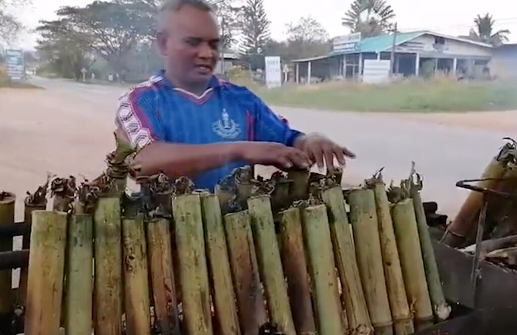 โดยนำไม้ไผ่มาตัดเป็นท่อนๆ แล้วก็นำข้าวเหนียวทั้ง ข้าวเหนียวขาวและข้าวเหนียวดำมาคลุกเคล้าให้เข้ากับน้ำตาล เกลือ กะทิสด น้ำใบเตย ยัดใส่ลงไปในกระบอกไม้ไผ่แล้วนำมาย่างไฟให้สุก เสร็จแล้วก็นำออกมาขาย ในราคากระบอกละ 20 บาท ข้าวหลามที่ทำจะมีรสหวานกลมกล่อม หอมกลิ่นใบเตยและกะทิ ที่คั้นสดๆ จากมือ ซึ่งก็สร้างรายได้ให้กับครอบครัวเฉลี่ย วันละ 400-500 บาทต่อวัน ซึ่งเศรษฐกิจเช่นนี้ก็ถือว่าโอเคแล้ว พอทำให้มีเงินซื้อกับข้าวและใช้จ่ายในครอบครัวได้บ้าง หากท่านใดสนใจก็สามารถโทรสั่งซื้อได้ ที่เบอร์ 065-4981064 .-สำนักข่าวไทย