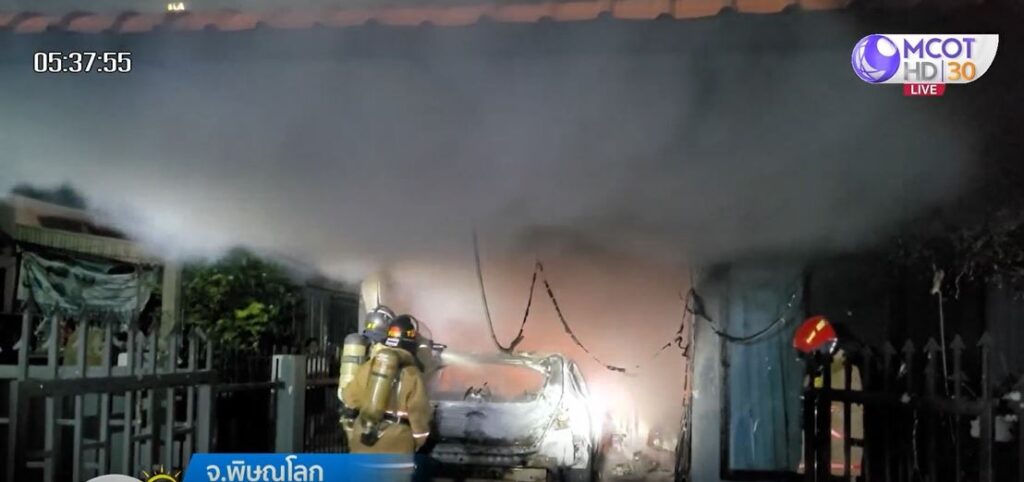 พิษณุโลก 3 มี.ค. – ไฟไหม้รถเก๋งจอดไว้ในบ้านเสียหายทั้งคัน โชคดีที่เจ้าหน้าที่ดับเพลิงควบคุมเพลิงไว้ได้ทัน ก่อนจะลามไหม้บ้านด้วย