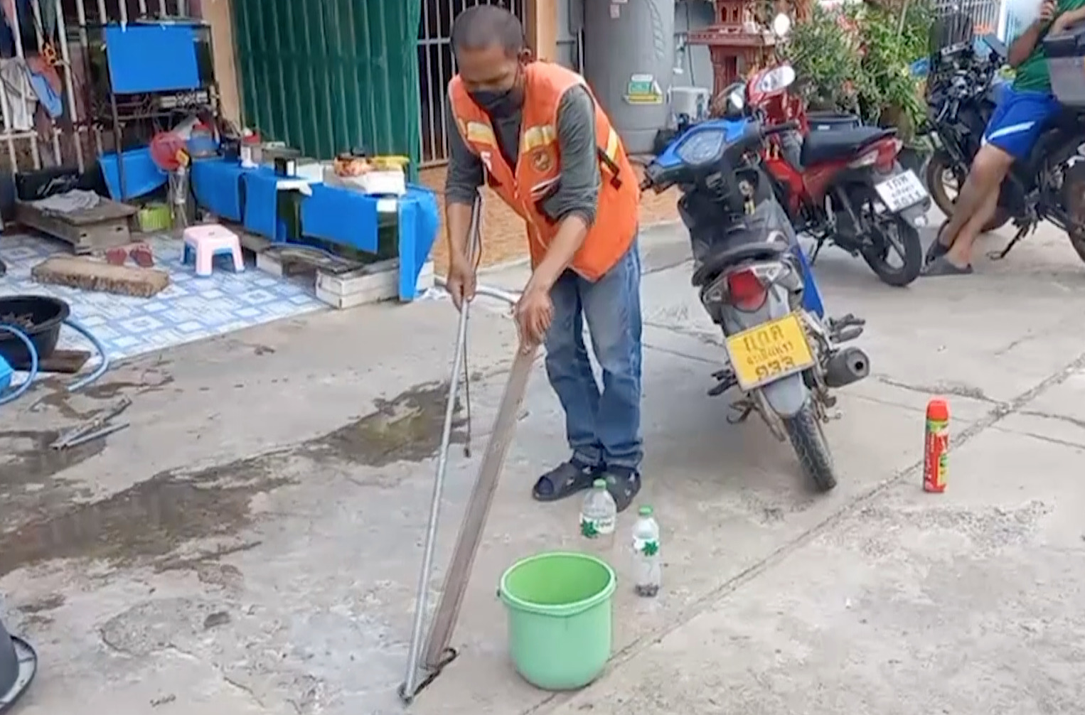 เมื่อผู้สื่อข่าวเดินทางไปถึง ลักษณะบ้านเป็นทาวน์เฮ้าส์ 2 ชั้นติดกัน พบเจ้าของบ้านและเพื่อนบ้านกำลังช่วยกันรื้อบ้านเพื่อหาลูกงูที่ยังคงหลงเหลืออยู่ โดยนายชูศักดิ์ เล่าให้ผู้สื่อข่าวฟังว่าบ้านที่พบลูกงูเป็นบ้าน 3 หลังติดกัน