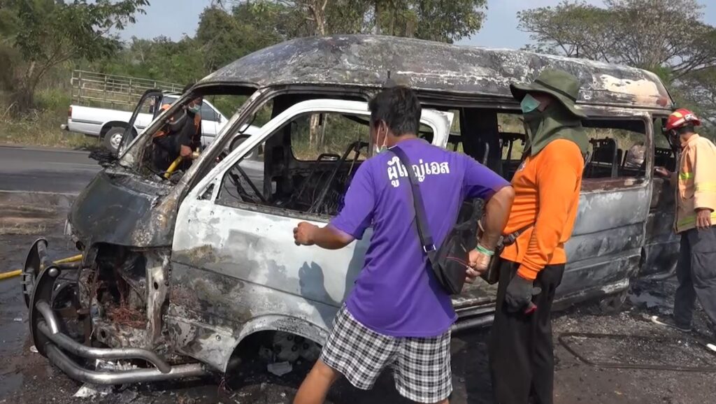นครราชสีมา 3 มี.ค.- ระทึก ไฟไหม้รถตู้รับส่งนักเรียนวอดทั้งคัน คบขับเผยกำลังไปรับเด็กนักเรียนหลังเลิกเรียน ก่อนหน้านี้จอดทิ้งไว้นาน 2 เดือน