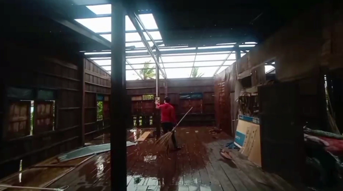 นอกจากนี้ ยังมีหลังคาบ้านเรือนประชาชนถูกพายุพัดหลุดออกจากตัวบ้าน ได้รับความเสียหายมากกว่า 20 หลังคาเรือน. – สำนักข่าวไทย