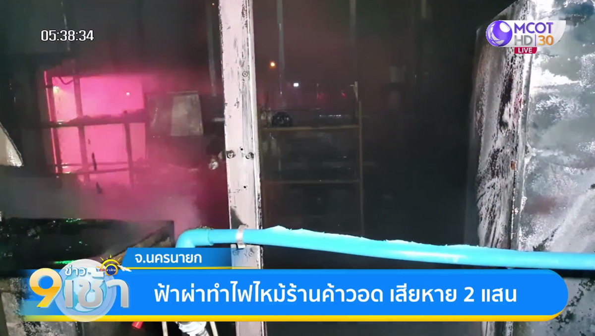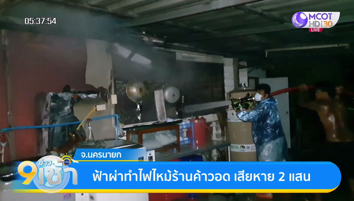 นครนายก 8 มี.ค. – เกิดเหตุไฟไหม้ร้านขายของชำริมถนน พื้นที่ อ.เมืองนครนายก เจ้าของร้านคาดสาเหตุมาจากฟ้าผ่า หลังมีพายุฝนและฟ้าร้องเสียงดัง ก่อนได้รับโทรศัพท์แจ้งว่า ร้านค้าที่อยู่หน้าบ้านเกิดไฟลุกไหม้ ประเมินความเสียหายราว 2 แสนบาท
