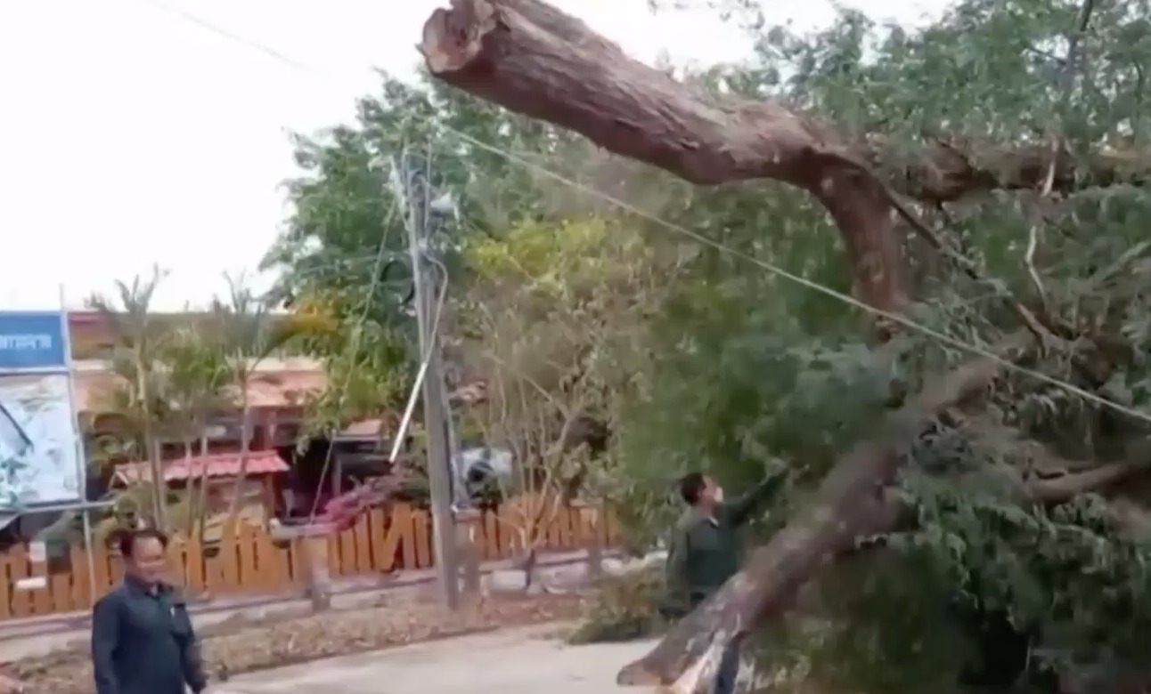 มุกดาหาร 8 มี.ค.- ฤทธิพายุฤดูร้อนถล่มตำบลเหล่าหมี อำเภอดอนตาล จังหวัดมุกดาหาร ช่วงกลางคืนที่ผ่านมา (7 มี.ค.) ทำให้ชาวบ้านหมู่ 5 และ หมู่ 9 เดือดร้อนนับสิบหลังคาเรือน สำรวจความเสียหายเบื้องต้นพบ เสาไฟฟ้าหักประมาณ 4 ต้น ไฟฟ้าดับทั้งหมู่บ้านยังใช้งานไม่ได้