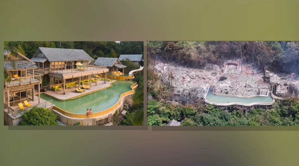 ตราด 8 มี.ค. – เหตุไฟไหม้โรงแรมหรูบนเกาะกูด จ.ตราด เมื่อวันที่ 6 มี.ค. ที่ผ่านมา พบมูลค่าความเสียหาย 200-300 ล้านบาท และมีทรัพย์สินนักท่องเที่ยว เสียหายอีกประมาณ 20 ล้านบาท ขณะที่โรงแรมออกแถลงการณ์ชี้แจง ยืนยันวิลล่าทุกหลังติดตั้งเครื่องตรวจจับควันไฟในห้องนอน