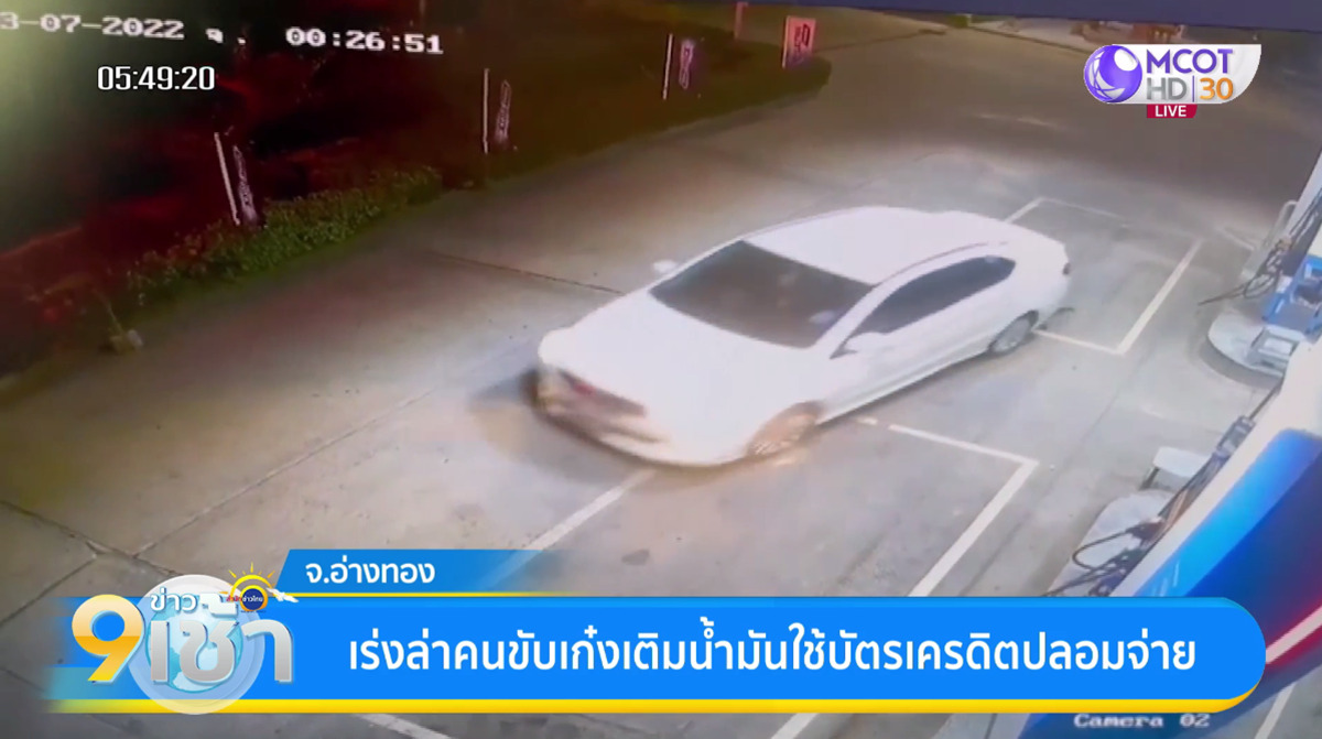 อ่างทอง 9 มี.ค. – วงจรปิดจับภาพรถเก๋งสั่งเด็กปั๊มเติมน้ำมันเต็มถัง ก่อนใช้บัตรเครดิตปลอมจ่าย เผลอหันหลังซิ่งหนีลอยนวล วอนตำรวจเร่งติดตามตัวมาดำเนินคดี