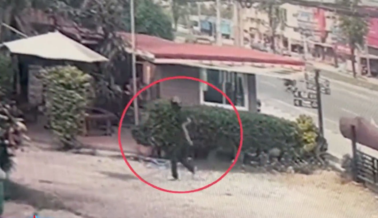 ภาพจากกล้องวงจรปิด บันทึกเหตุการณ์ขณะวัยรุ่นชาย สวมหมวกันน็อก สีดำ เดินเข้าหานายปริพัฒน์ และนายอนุกูล ปัตรเจริญ นักเรียน ปวช. ปี 2 วิทยาลัยเทคโนโลยีภาคตะวันออก จ.ชลบุรี ก่อนชักอาวุธมีดหัวตัด ยาวประมาณ 1 ฟุต ออกมาวิ่งไล่ฟัน แต่เคราะห์ดีที่ทั้ง 2 คน วิ่งหลบหนีได้ทัน จึงไม่ได้รับอันตราย