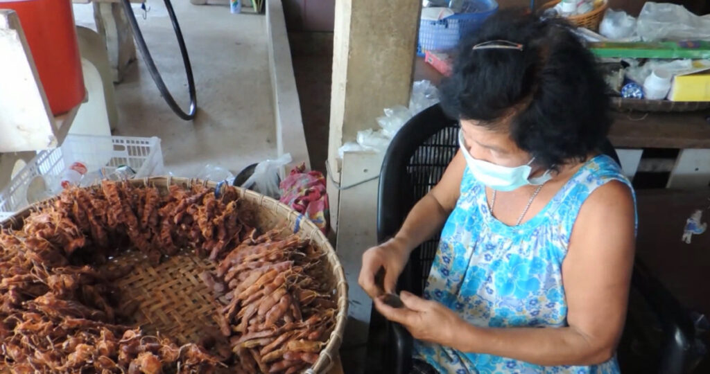 การแกะมะขามขายก็จะต้องเลือกฝักที่สุกเต็มที่ แกะเปลือกออก ใช้มีดแกะเม็ดข้างในออกให้หมด แล้วจึงนำไปตากแดดให้แห้ง จากนั้นนำมาปั้น นำไปชั่งน้ำหนักเตรียมส่งลูกค้าที่สั่งไว้