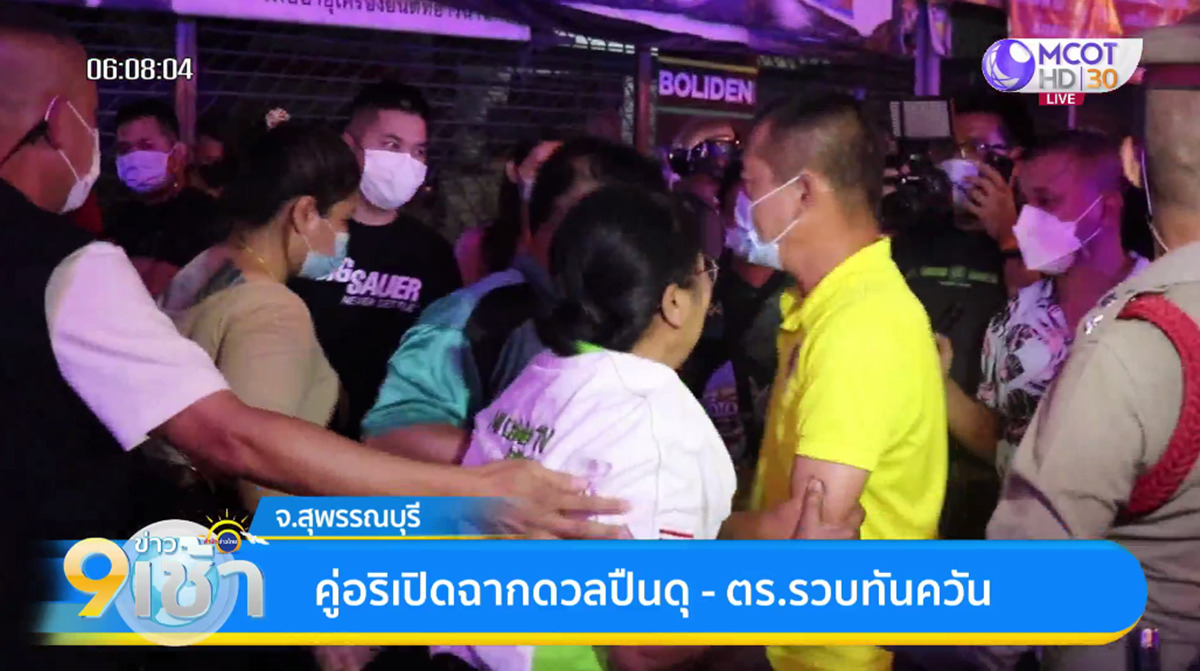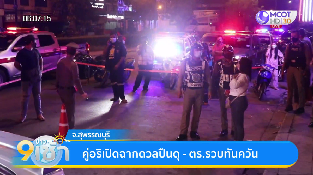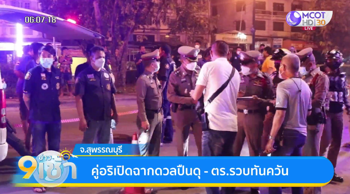 กล้องวงจรปิดบันทึกภาพวินาทีผู้คนออกมารับประทานอาหารกลางดึก ระหว่างที่กำลังเพลิดเพลิน มีเสียงปืนดังขึ้นต่อเนื่องหลายนัด ก่อนพากันวิ่งหนีตาย เหตุการณ์นี้เกิดขึ้นบริเวณถนนแยกเณรแก้ว ต.ท่าพี่เลี้ยง อ.เมือง จ.สุพรรณบุรี