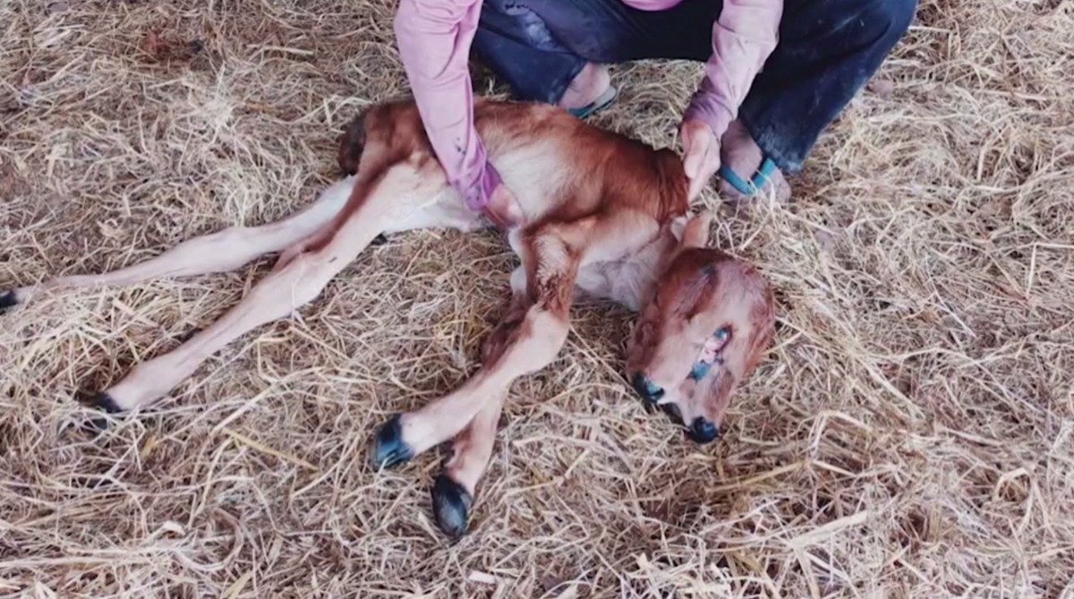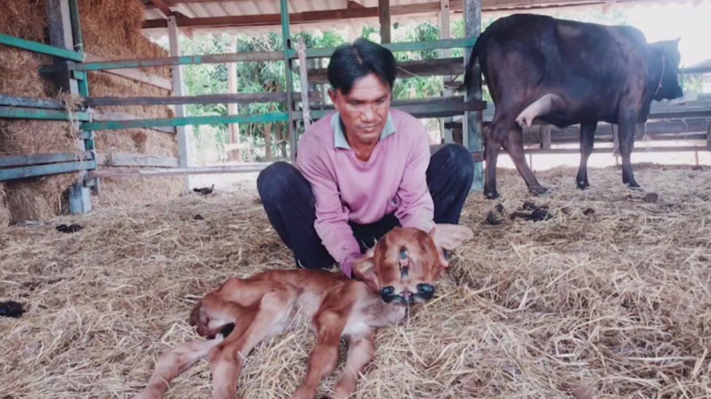 นายศรี รัตนะวิวัฒน์ อายุ 59 ปี เจ้าของวัว เล่าว่า เมื่อวันที่ 7 มีนาคมที่ผ่านมา ช่วงเวลาประมาณ 16.00 น. วัวของตนมีอาการเจ็บท้องออกลูก แต่ไม่ออกสักที จนกระทั่งเวลาประมาณ 20.00 น. จึงได้ตามสัตวแพทย์เพื่อมาทำคลอดให้ และสัตวแพทย์ได้ทำคลอดด้วยการดึงลูกวัวออกมา ใช้เวลาประมาณครึ่งชั่วโมง สัตวแพทย์วินิจฉัยว่า ไม่นานลูกวัวตัวนี้จะต้องตายแน่นอน แต่ผ่านมา 3 วันแล้ว ลูกวัวยังหายใจอยู่ รู้สึกสงสารเป็นอย่างมาก ทำให้ตอนนี้ไม่กล้าไปไหน ทำอะไรก็ไม่ได้ ได้แต่เฝ้ารอให้ลูกวัวตัวนี้หมดลมหายใจไปเอง. – สำนักข่าวไทย