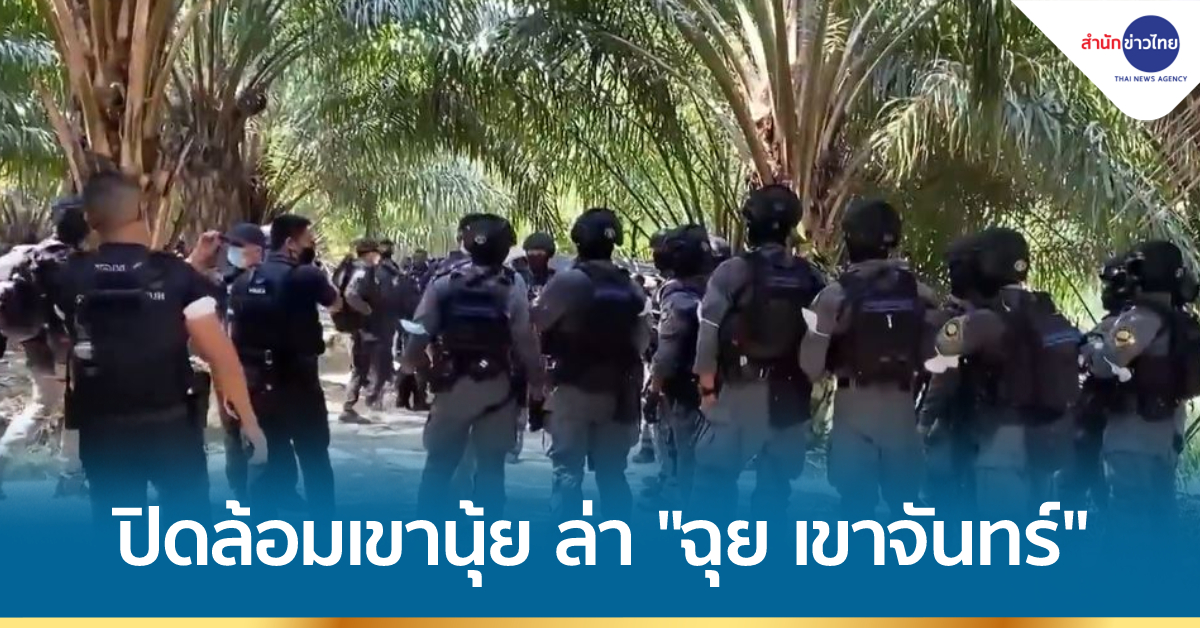 สงขลา 12 มี.ค. – ผบ.ตร. สั่งระดมกำลังตำรวจกว่า 100 นาย พร้อมอาวุธครบมือ ปิดล้อมพื้นที่รอบเขานุ้ย ต.เขาพระ อ.รัตภูมิ จ.สงขลา ล่าตัว “ฉุย เขาจันทร์” กับพวก