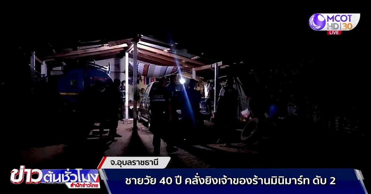 อุบลราชธานี 13 มี.ค. – ชายวัย 40 ปี เมาคลั่งก่อเหตุยิงเจ้าของร้านมินิมาร์ท เสียชีวิต 2 ราย ตำรวจปิดล้อมกล่อมอยู่นานนับชั่วโมง จึงยอมมอบตัว สภาพเมา พูดจาไม่รู้เรื่อง แต่ยอมรับก่อเหตุจริง