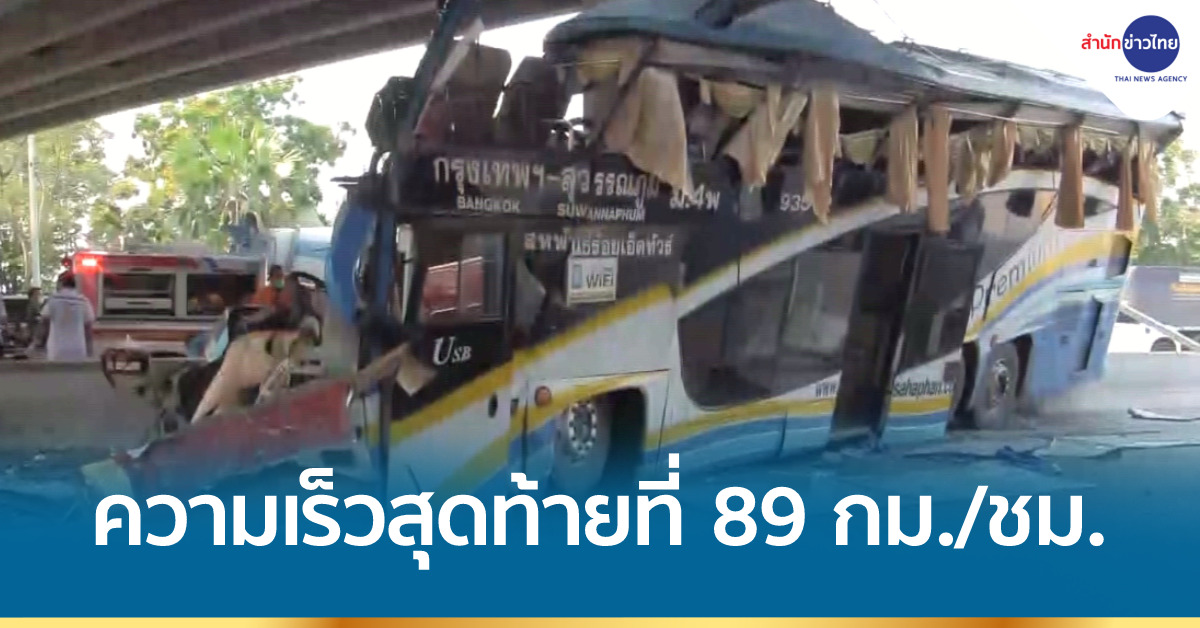 สระบุรี 13 มี.ค.- กรณีรถทัวร์ชนตอม่อกลางถนนมิตรภาพ ขณะนี้ได้รับรายงานเพิ่มว่ามีผู้เสียชีวิตเป็น 8 ราย ทางเจ้าหน้าที่จะเร่งตรวจสอบกล้องวงจรปิดเพื่อหาสาเหตุการเกิดอุบัติเหตุในครั้งนี้ ด้านกรมการขนส่งทางบก ตรวจสอบ GPS รถคันนี้ ตลอดเส้นทางการเดินทางพบว่ามีการใช้ความเร็วตามที่กฎหมายกำหนด พบความเร็วสุดท้าย GPS ที่ 89 กม./ชั่วโมง