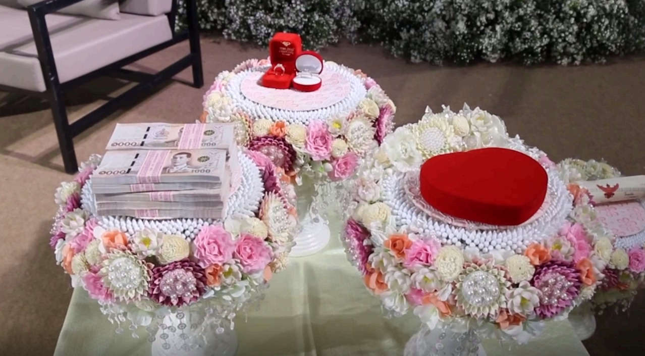 ในงานพิธีมงคลสมรสระหว่างนางสาวพิชญา หรือใบหลิว อายุ 33 ปี และนายภานุพงษ์ หรือนิกกี้ อายุ 33 ปี ทั้งคู่เป็นชาว จ.ขอนแก่น จัดขึ้นภายในศูนย์ประชุมและแสดงสินค้านานาชาติขอนแก่น ถ.มิตรภาพ ในเขตเทศบาลนครขอนแก่น พิเศษไปกว่าคู่แต่งงานคู่อื่นคือ ฝ่ายเจ้าสาวเป็นผู้หอบสินสอดทองหมั้น ยกขบวนขันหมากไปสู่ขอฝ่ายชาย
