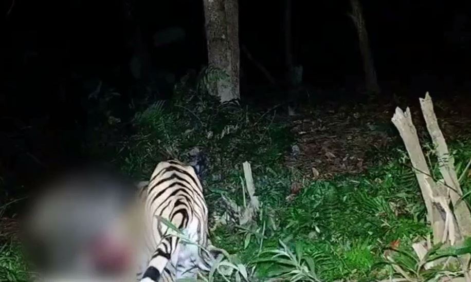 นายวิษณุ เปียมาลย์ อายุ 42 ปี เจ้าของบ้านใน ต.ระบำ อ.ลานสัก จ.อุทัยธานี เปิดเผยว่า เมื่อช่วงกลางดึกคืนที่ผ่านมา ขณะตนเองกลับถึงบ้าน และเตรียมจะเข้าอาบน้ำเข้านอน ระหว่างยืนอยู่หลังบ้าน ได้ยินเสียงควายในคอกที่มีประมาณ 50 ตัว วิ่งพล่านอยู่ในคอก และส่งเสียงร้องลักษณะตกใจตื่นกลัว ตนจึงรีบไปหยิบปืนยาว และไฟฉาย รีบวิ่งไปที่คอกควาย อยู่ห่างจากบ้านประมาณ 50 เมตร เมื่อไปถึง เห็นเสือโคร่งขนาดใหญ่กระโจนจากคอกควาย มุ่งหน้าไปทางสระน้ำ จึงส่องไฟฉายตามหลังเสือ พบลักษณะเดินแบบไม่มีแรง ขาข้างหนึ่งพิการ รูปร่างผอมโซ ไม่มีแรง