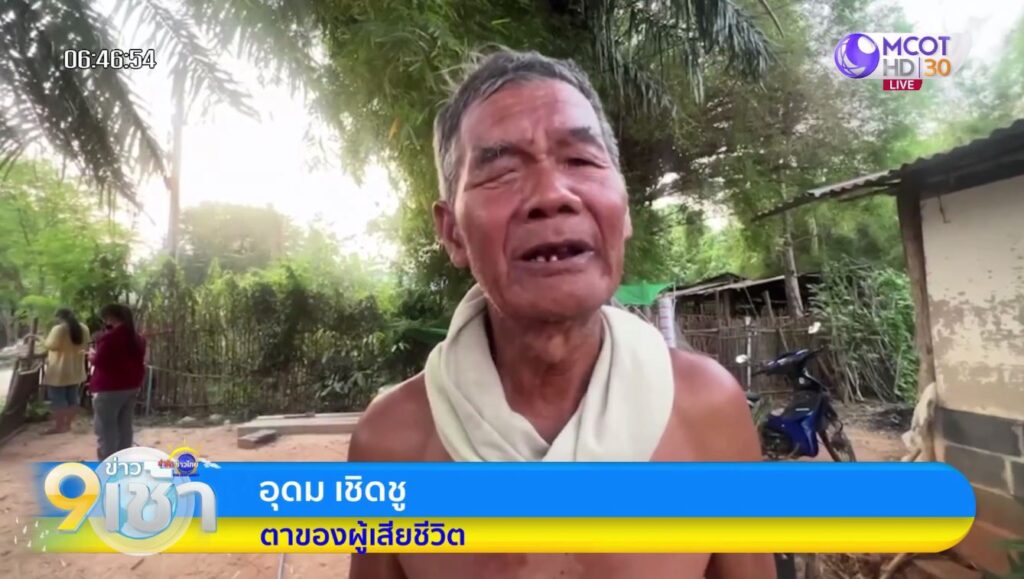 คุณตาอุดม เชิดชู อายุ 74 ปี ตาของผู้เสียชีวิต เผยว่า หลังทราบข่าวหลานชายถูกรุ่นพี่รับน้องจนเสียชีวิต รู้สึกเสียใจมาก เพราะตนเลี้ยงมาตั้งแต่เล็กๆ ส่วนเรื่องของคดีต้องให้ทางพ่อแม่ของน้องตัดสินใจ
