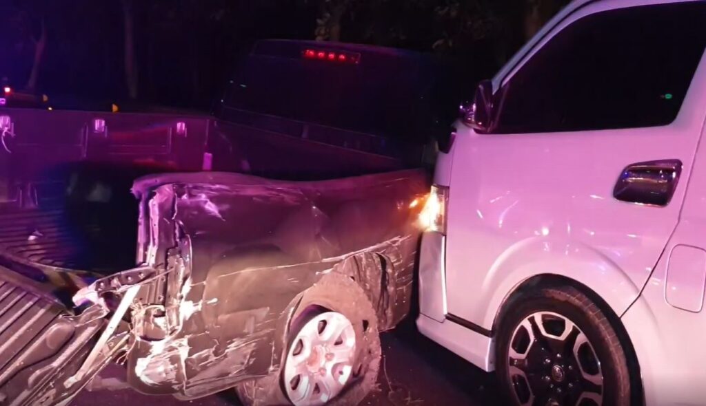 เมื่อไปถึงที่เกิดเหตุ พบว่าเป็นทางโค้ง และมืดสนิท พบรถกระบะ ยี่ห้อเชฟโรเลต ตอนครึ่ง สีดำ ประสบอุบัติเหตุชนกับกาดเลนเกาะกลางถนนได้รับความเสียหาย มีผู้ได้รับบาดเจ็บและผู้เสียชีวิตนอนเกลื่อนร่องกลางถนน และยังมีรถตู้มองไม่เห็นวิ่งเข้ามาชนซ้ำ จากการตรวจสอบเบื้องต้นพบผู้โดยสารมากับรถกระบะ เป็นแรงงานเถื่อนชาวเมียนมา รวม 18 คน ได้รับบาดเจ็บสาหัส 5 คน ได้รับบาดเจ็บเล็กน้อยไม่ไปโรงพยาบาล 7 คน และเสียชีวิตรวม 6 คน แบ่งเป็นชาย 2 คน หญิง 3 คน และเด็กหญิง 1 คน เจ้าหน้าที่กู้ภัยได้ช่วยกันลำเลียง นำผู้ได้รับบาดเจ็บและผู้เสียชีวิตส่งโรงพยาบาลประจวบคีรีขันธ์