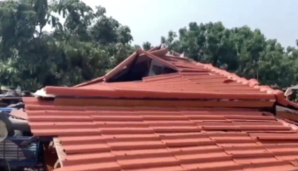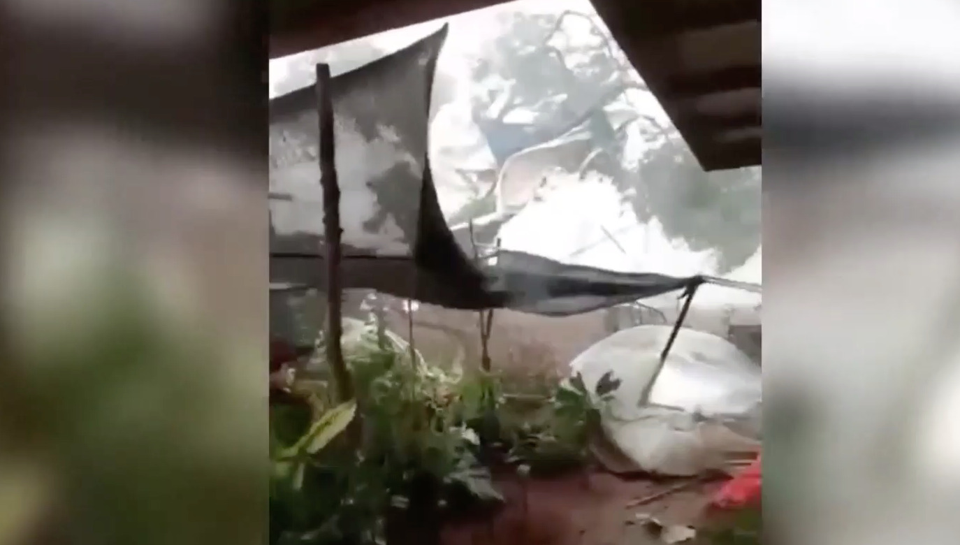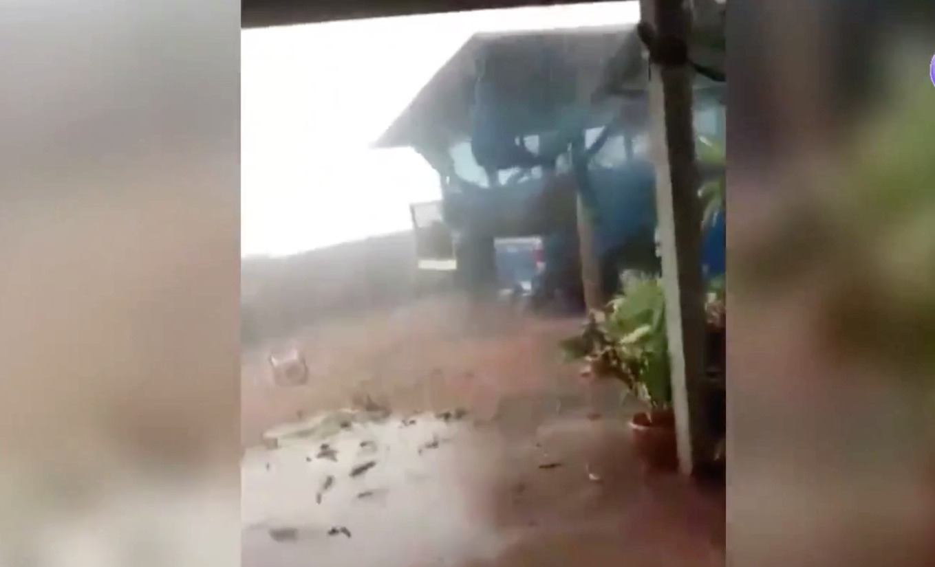 ตาก 16 มี.ค.- เกิดพายุฤดูร้อนถล่มพื้นที่อำเภอสามเงา จังหวัดตาก ลมกระโชกพัดหลังคาบ้านปลิวตามแรงลม ต้นไม้หักโค่น เสาไฟล้ม บ้านเรือนเสียหายเกือบร้อยหลัง โดยเฉพาะหมู่ 10 หนักสุด ชาวบ้านถึงกับหลั่งน้ำตา