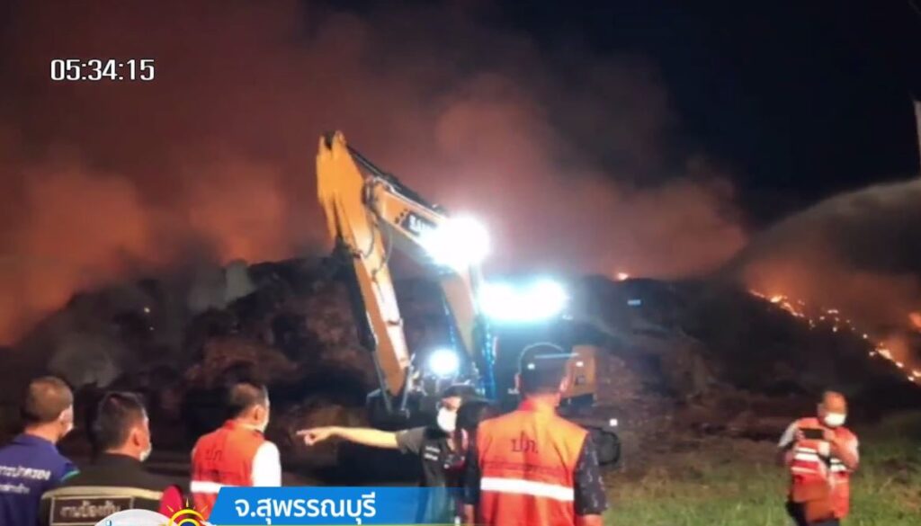 ด้านนายธีรยุทธ์ จันทร์ดิษฐวงษ์ ผู้อำนวยการศูนย์ป้องกัน และบรรเทาสาธารณภัย เขต 2 สุพรรณบุรี กล่าวว่า วันนี้ได้นำกำลังมาเสริมร่วมกับทีมในพื้นที่ และจะนำรถดับเพลิง ฉีดน้ำระยะไกลเข้ามาเสริมอีก เพื่อป้องกันฝุ่นละออง เนื่องจากบางช่วงมีกระแสลมพัดแรง อาจส่งผลให้มีฝุ่นฟุ้งกระจาย โชคดีที่พื้นที่รอบด้านอยู่ห่างจากชุมชน โดยจะประเมินทิศทางลมอีกครั้ง คาดว่าไฟจะยังคงลุกไหม้อีกอย่างน้อย 3 วัน ถึงจะสามารถควบคุมเพลิงไว้ได้