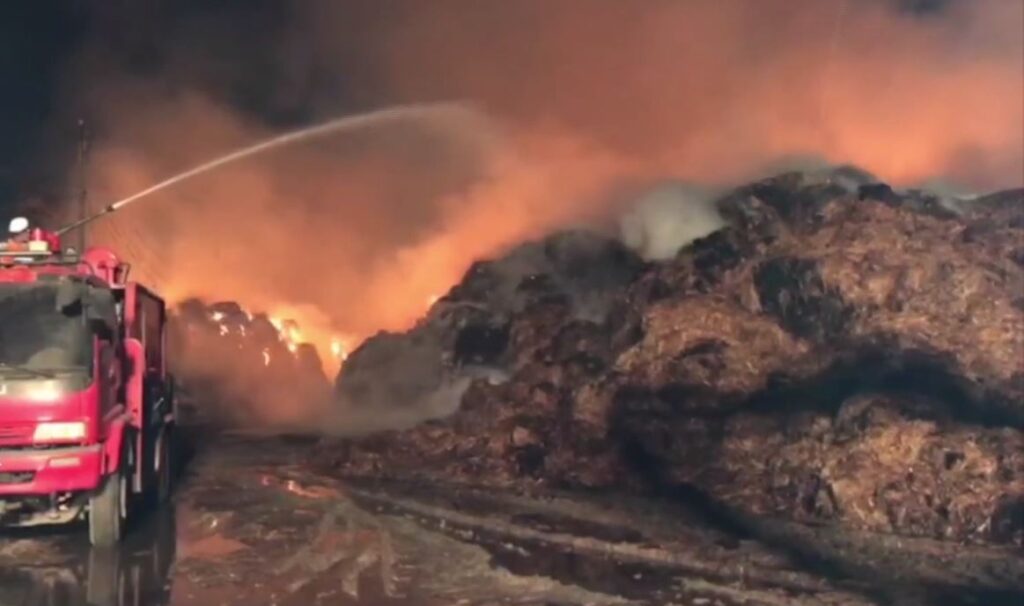 สุพรรณบุรี 17 มี.ค. – ไฟไหม้กองอัดใบอ้อยในโรงงานน้ำตาลสุพรรณฯ พื้นที่กว่า 40 ไร่ จมทะเลเพลิง ล่าสุดควบคุมเพลิงได้ในวงจำกัดแล้ว แต่ยังต้องฉีดน้ำควบคุมเพลิงบางส่วน