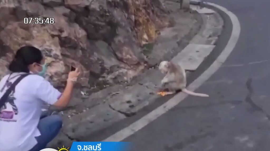 ชลบุรี 17 มี.ค. – พบลิงเผือกหาดูยาก ลงจากเขาสามมุก มารับอาหารจากนักท่องเที่ยว ใบหน้าคล้ายลิงในตำนาน ชาวบ้านเชื่อมีแค่ 2 ตัว ปกติชอบอยู่บนยอดเขาสูง ไม่ให้ใครเห็นง่ายๆ