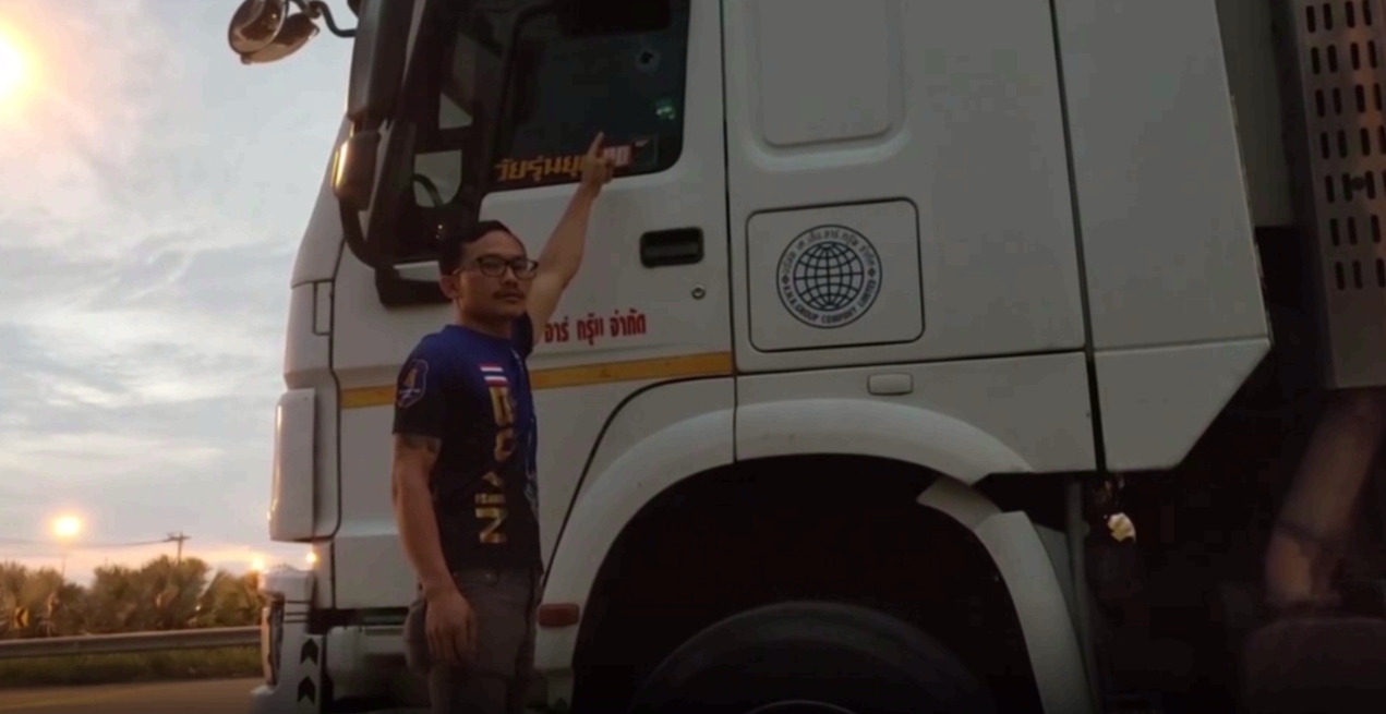 คนขับเล่าวว่า ขณะตนกำลังขับรถเทรลเลอร์มาตามถนนสายคู่ขนานมอเตอร์เวย์ มีรถยนต์เก๋งคันหนึ่งขับแซงซ้ายขึ้นมา ก่อนใช้อาวุธปืนยิงใส่รถของตนเองบริเวณกระจกประตูด้านซ้าย ก่อนขับรถหลบหนีมุ่งหน้าไปทางแหลมฉบัง ตนเองพยายามขับตามรถคันดังกล่าวไป แต่เนื่องจากรถของตนเองเป็นรถหนัก จึงไม่สามารถขับรถตามไปทันได้จึงคลาดกันไป ซึ่งตนเองขับรถมาตามปกติ โดยมีน้องชายขับตามหลังมาด้วย ก่อนเกิดเหตุไม่ได้มีการขับรถปาดหน้ากันแต่อย่างใด ขับมาไม่เร็วประมาณ 60 กม./ชั่วโมง ซึ่งตนเองก็ไม่แน่ใจว่าผู้ก่อเหตุจะหงุดหงิดอะไรมาหรือไม่ ซึ่งหลังจากโดนยิงแล้วตนเองรู้สึกตกใจมาก เสียงดังเข้ามาในรถ ซึ่งตนเองขับมาคนเดียว โชคดีที่ไม่มีใครนั่งมาด้วย มิเช่นนั้นอาจได้รับบาดเจ็บหรือเสียชีวิต เนื่องจากร่องรอยรูกระสุนที่ยิงเข้าไปนั้นอยู่ในระดับที่ถ้ามีคนนั่งจะถูกบริเวณหัวไหล่หรือศีรษะเลยก็เป็นไปได้ ซึ่งน่าเสียดายที่รถของตนเองไม่ได้ติดตั้งกล้องหน้ารถไว้ด้วย