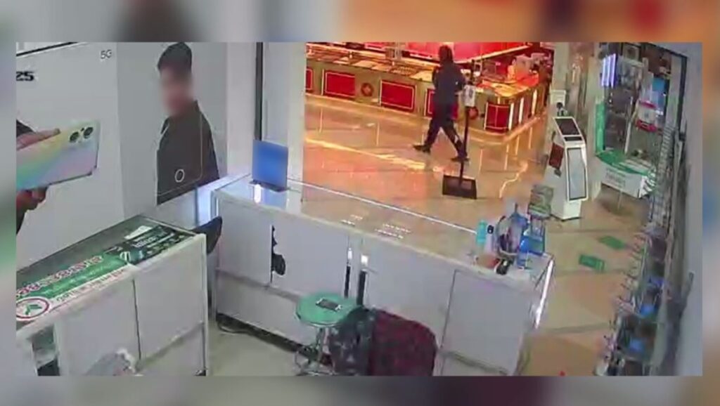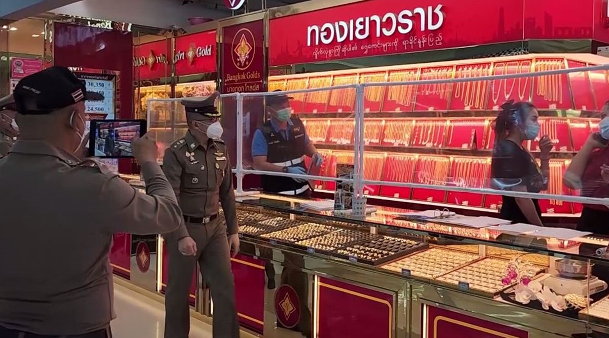 จากการตรวจสอบกล้องวงจรปิด พบคนร้ายเป็นชาย รูปร่างสูง ผิวขาว อายุไม่เกิน 30 ปี สวมเสื้อเเขนยาวสีน้ำเงิน สวมหมวกไหมพรมคลุมใบหน้า กระโดดเข้ามาใช้มีดข่มขู่พนักงาน ก่อนหยิบทองจากแผงในตู้กระจกไป ใช้เวลาก่อเหตุไม่ถึง 1 นาที ขณะที่ตำรวจเก็บลายนิ้วมือรวบรวมไว้เป็นหลักฐาน และอยู่ระหว่างกระจายกำลังออกติดตามคนร้าย. – สำนักข่าวไทย